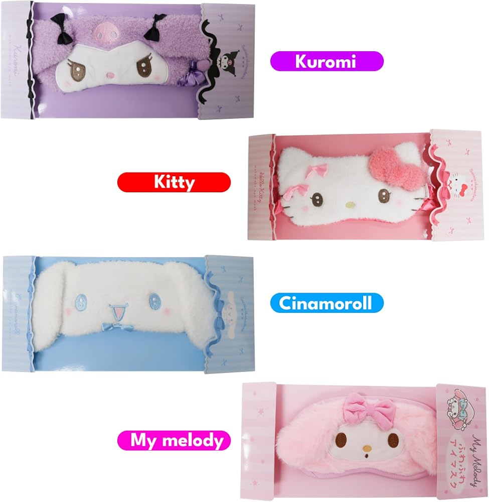 Introducing the Mocomoco Sleep Eye Mask, featuring the adorable kawaii characters Kitty Kitten, Kuormi-Bunny, Cinnamon-roll, and My-Meloday. This plush sleep mask is the epitome of comfort and luxury, meticulously crafted with a harmonious blend of soft plush and smooth satin. It ensures a gentle touch against your skin, offering an unparalleled sleeping experience.