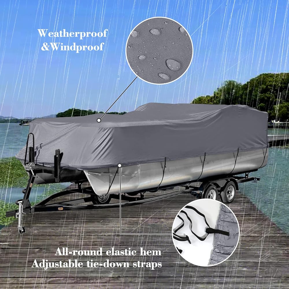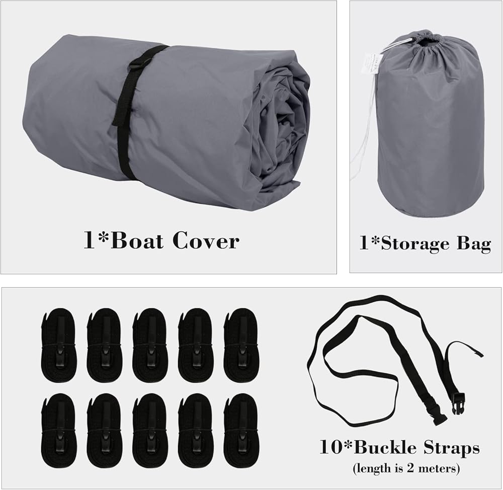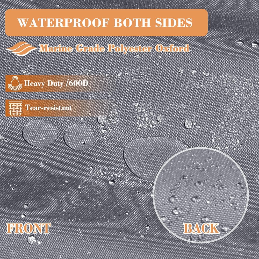 غطاء قارب عائم قابل للمقطورة، غطاء قارب مقاوم للأشعة فوق البنفسجية مقاوم للماء شديد التحمل 600D للقارب العائم وقارب سطح السفينة، يناسب طوله من 17 إلى 20 قدمًا، وعرض الشعاع يصل إلى 102 بوصة، رمادي