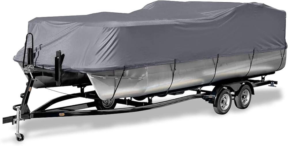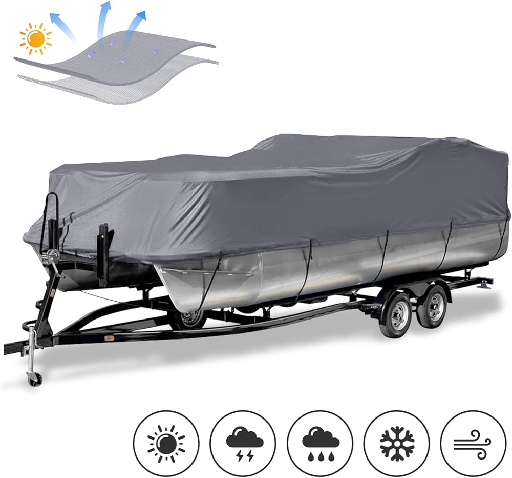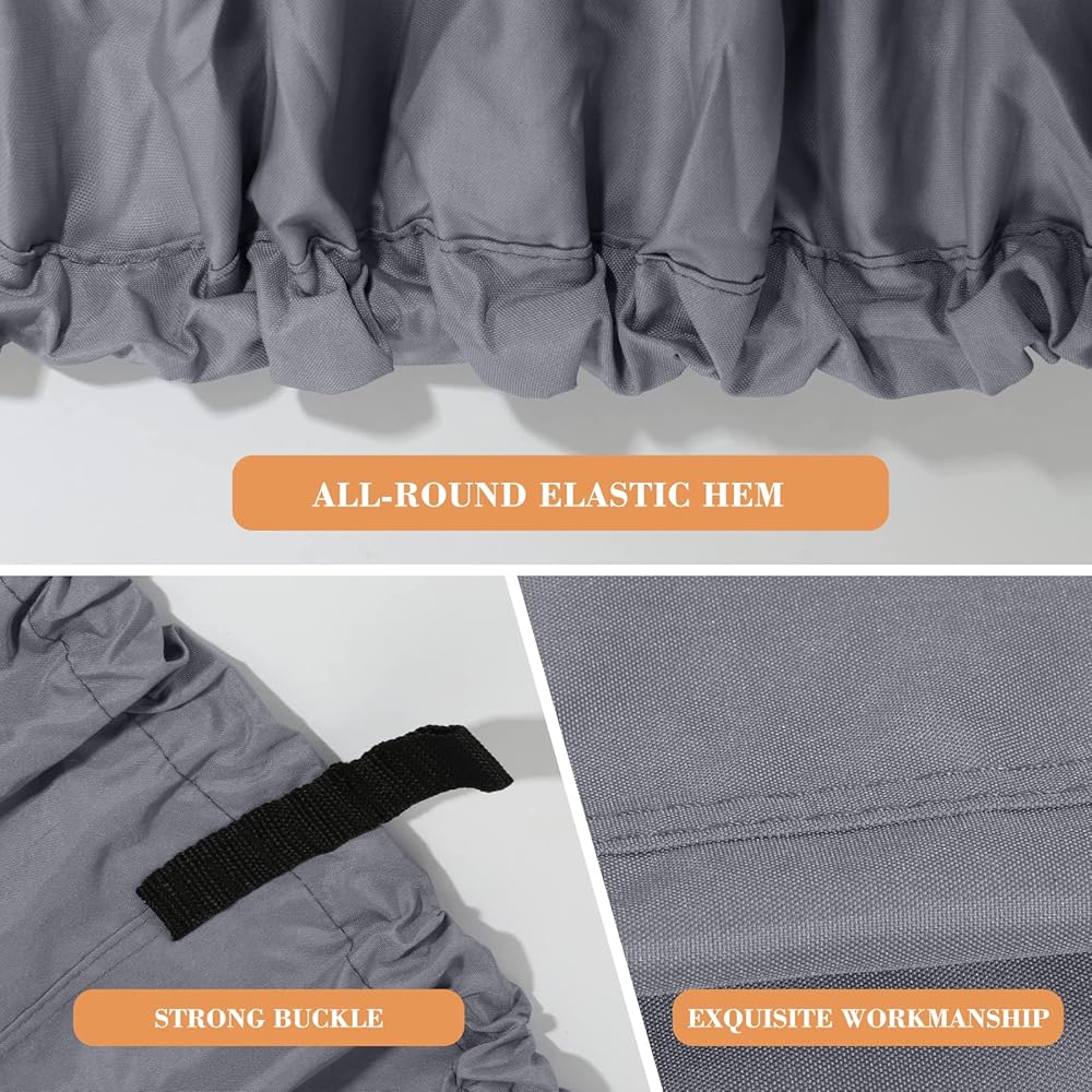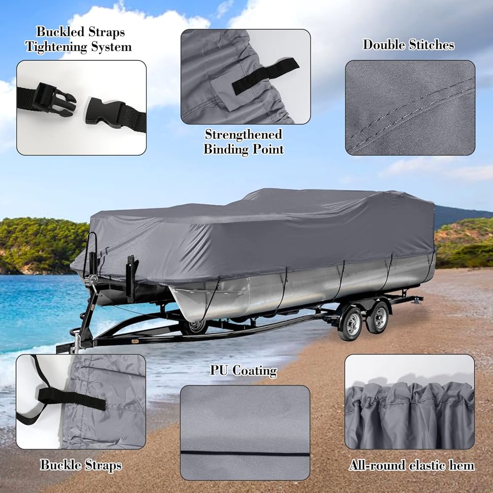 غطاء قارب عائم قابل للمقطورة، غطاء قارب مقاوم للأشعة فوق البنفسجية مقاوم للماء شديد التحمل 600D للقارب العائم وقارب سطح السفينة، يناسب طوله من 17 إلى 20 قدمًا، وعرض الشعاع يصل إلى 102 بوصة، رمادي