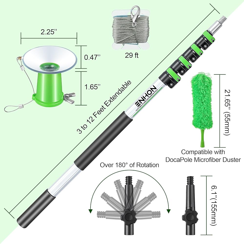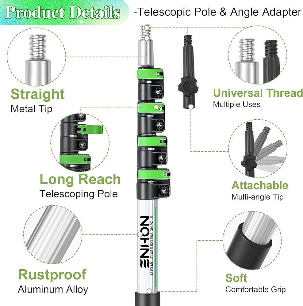 Compatible with cleaning supplies, dusting attachments, brushes, squeegees, trimmers, scrubbers and more that can be attached to this telescopic pole