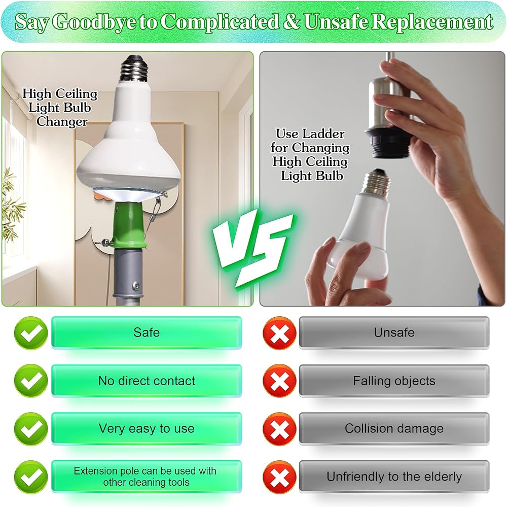 Stay off the ladder. Stay off the roof. Get the job done with. . . Enhon light bulb changing pole for high ceilings!