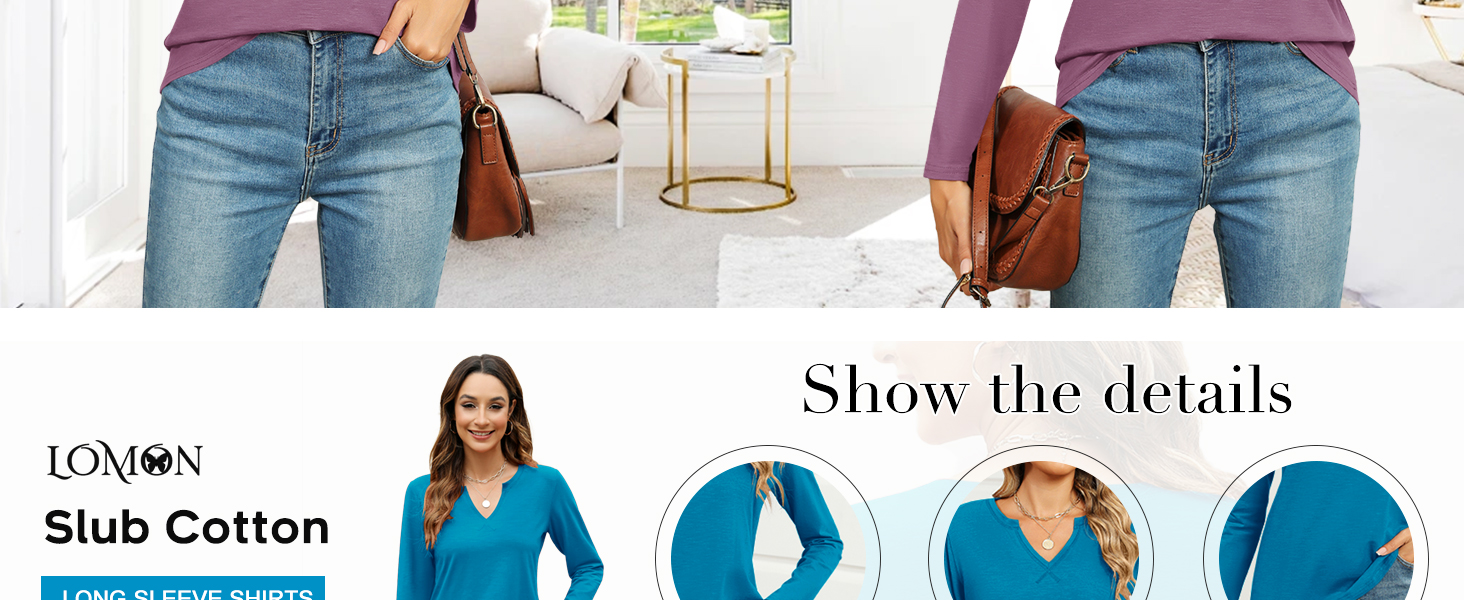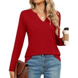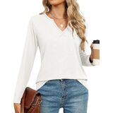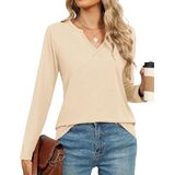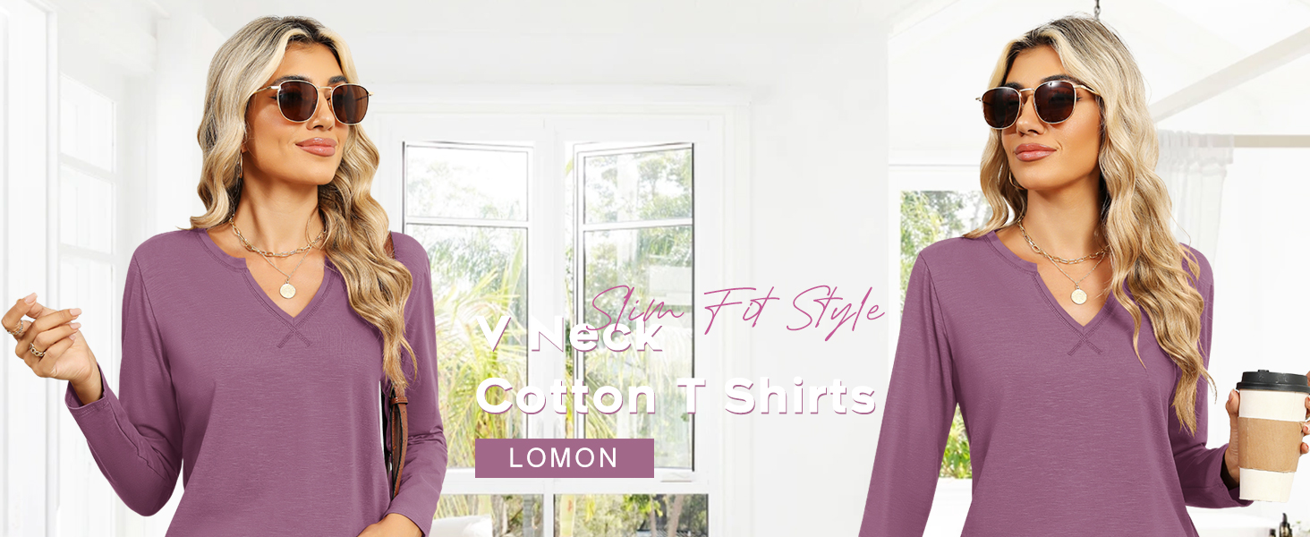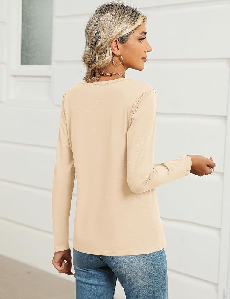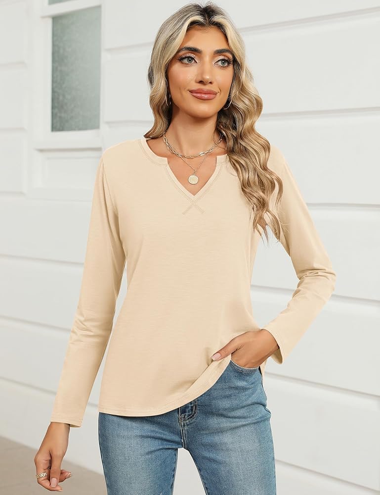 تي شيرت نسائي كاجوال برقبة على شكل حرف V - هذا القميص طويل الأكمام مصنوع من 95% قطن و5% ألياف لدنة، وله خط رقبة جذاب على شكل حرف V. هذا القميص الناعم وخفيف الوزن يشعرك بالاسترخاء. إنه كاجوال ولكنه ليس عاديًا جدًا بسبب الدرزة المكشوفة تصميم ونسيج قطني سلوب.