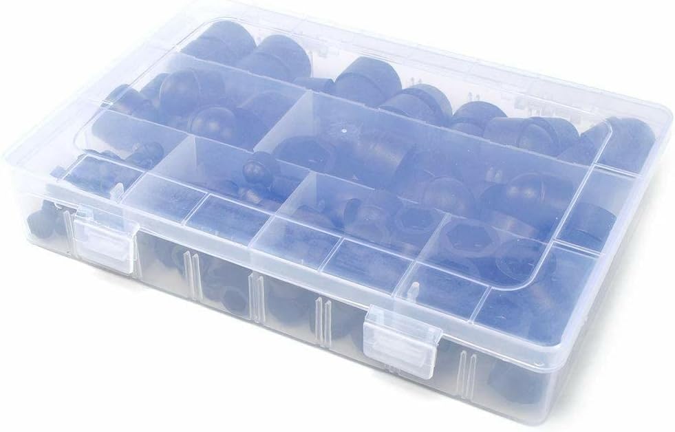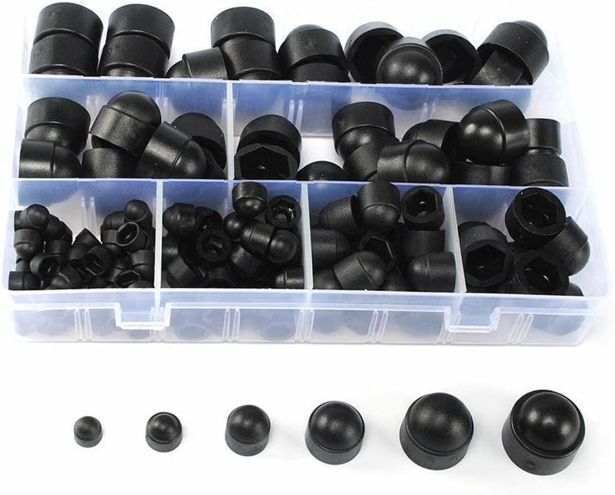 Package Contents: 15 X M12 Dome Nut Covers 20 x M10 Dome Nut Covers 10 x M8 Dome Nut Covers 20 x M6 Dome Nut Covers 30 x M5 Dome Nut Covers 50 x M4 Dome Nut Covers