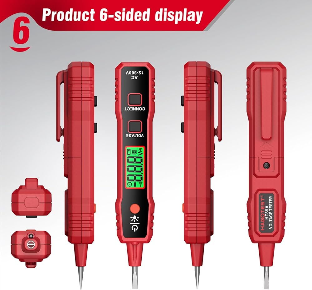 جهاز اختبار الجهد الكهربي، جهاز اختبار الجهد الكهربي غير التلامسي من HABOTEST مع شاشة LCD، جهاز اختبار الأسلاك الحية/الفارغة، إنذار صفارة اختبار كهربائي ومصباح يدوي، مكتشف نقطة انقطاع الأسلاك للمنزل والسيارة والضوء