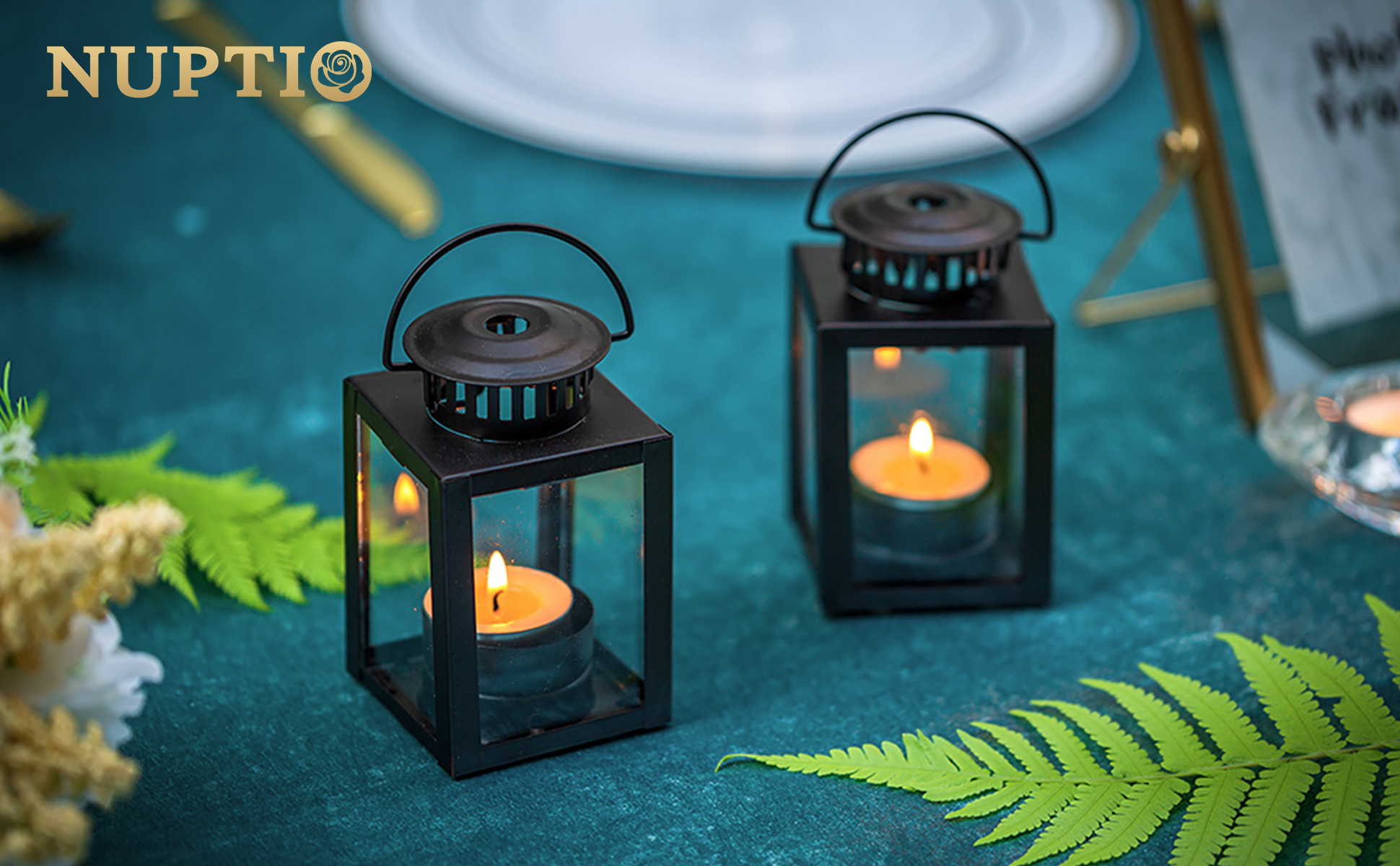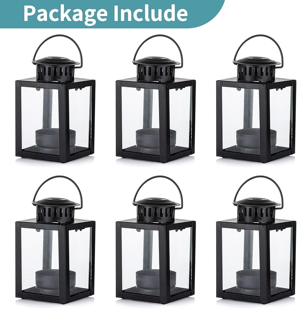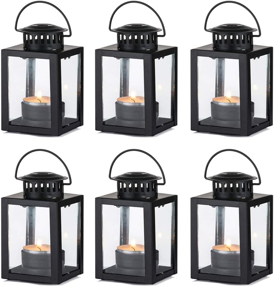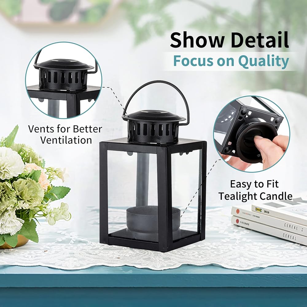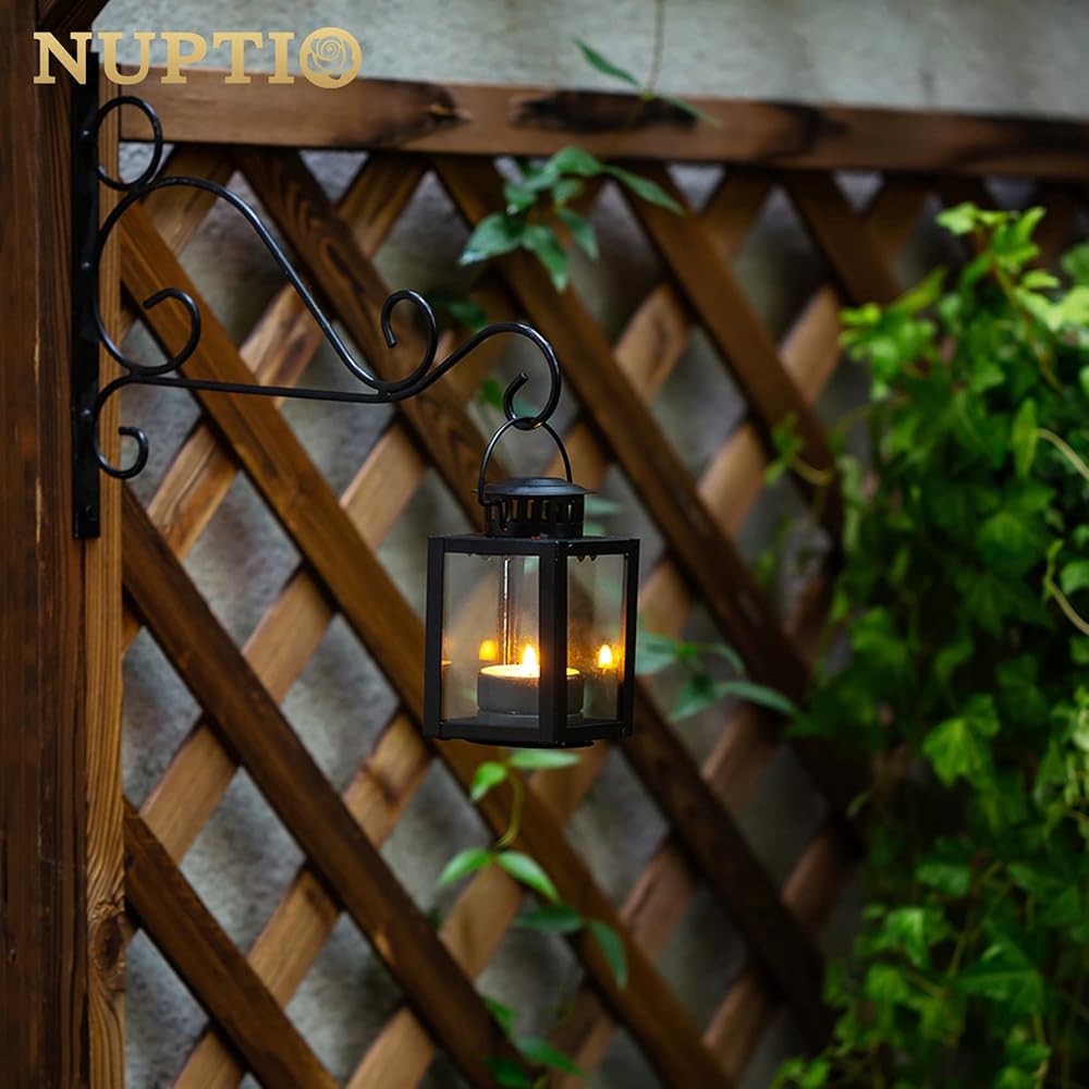 فوانيس Nuptio لشموع فوانيس الحديقة، فوانيس صغيرة معلقة على الطراز العتيق لشموع الشموع الصغيرة، حاملات مصابيح الشاي السوداء للمناسبات الداخلية والخارجية وحفلات أعياد الميلاد (5 قطع + قطعة واحدة)