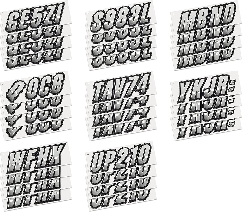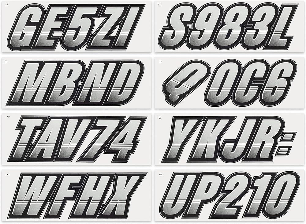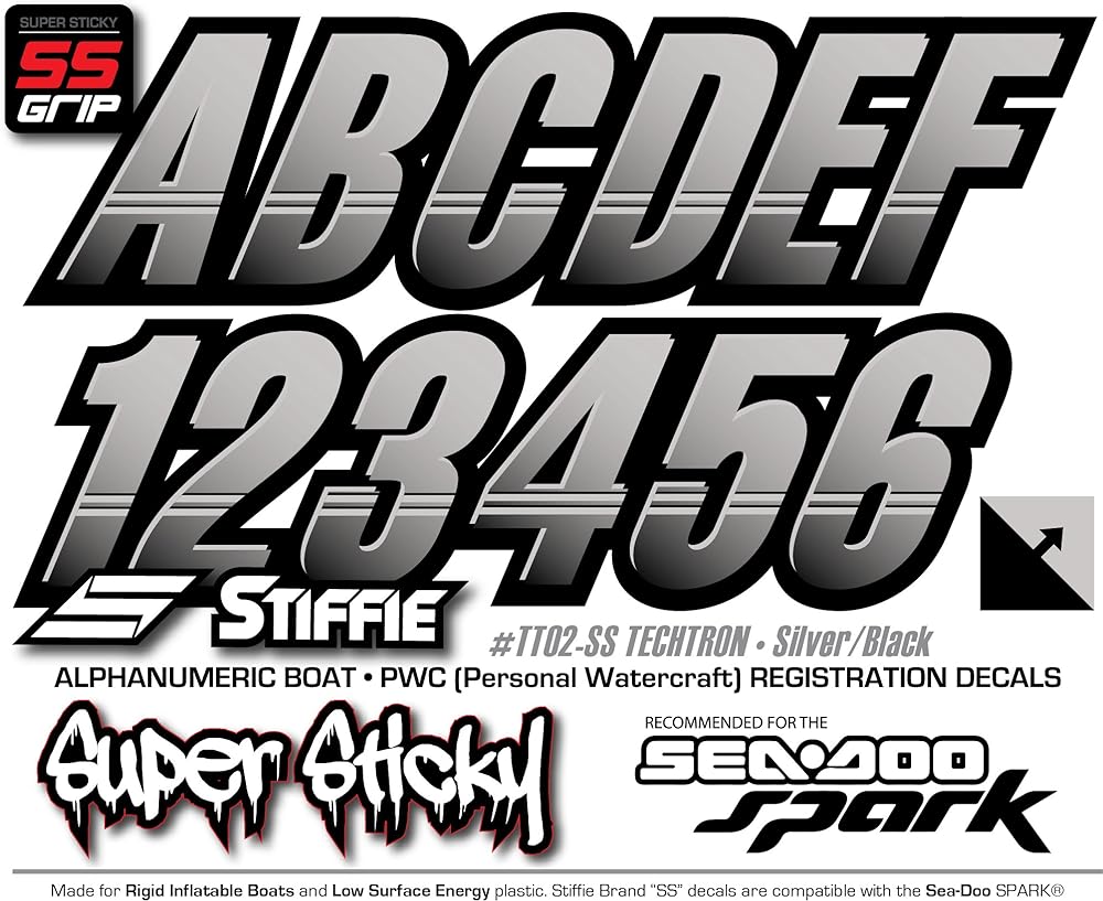 ملصقات أرقام تعريف التسجيل الرقمية ألفا من Techtron باللون الفضي/الأسود مقاس 3 بوصات من أجل Sea-Doo SPARK، والقوارب القابلة للنفخ، والأضلاع، والهيبالون/PVC، وPWC والقوارب.