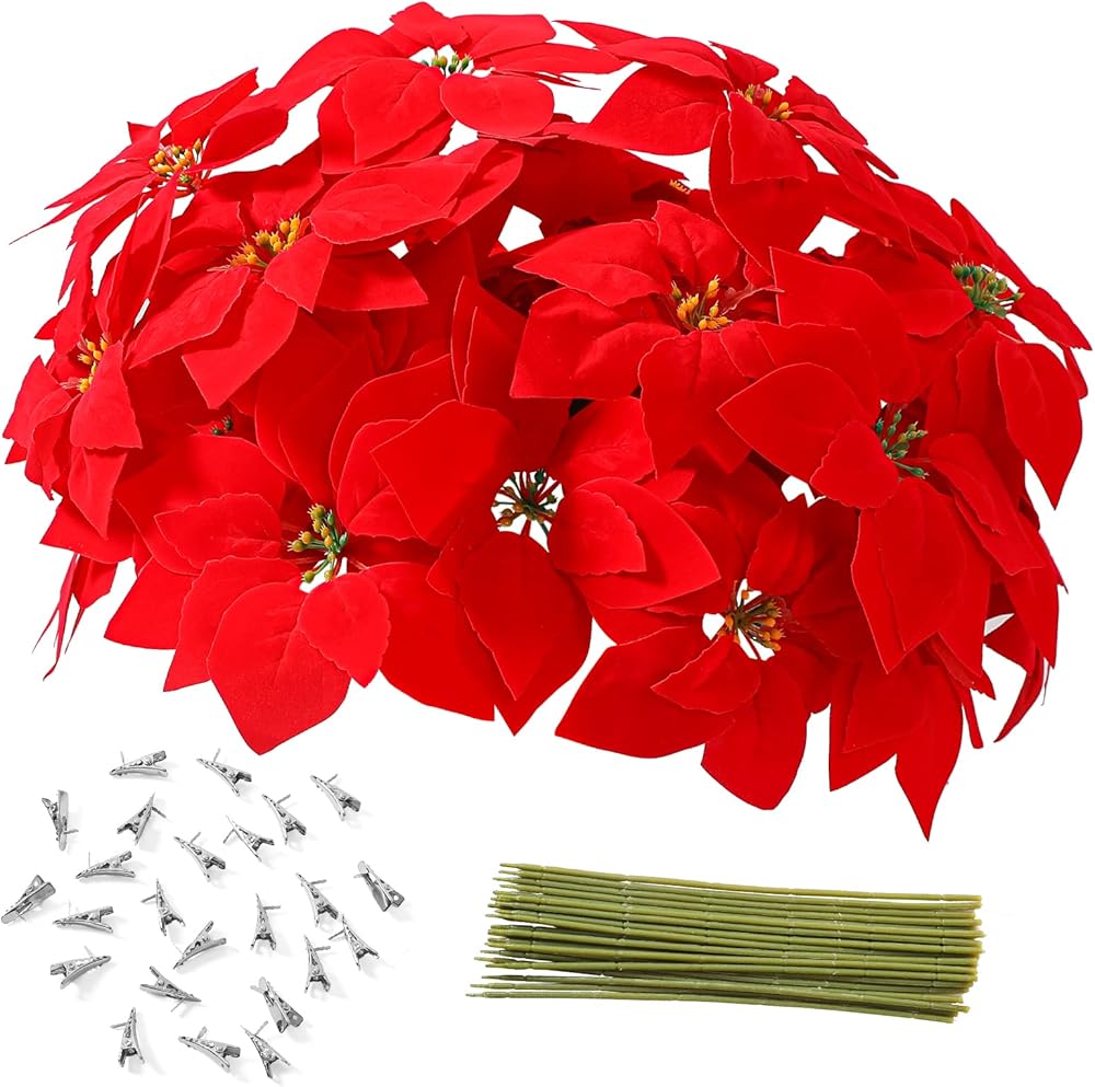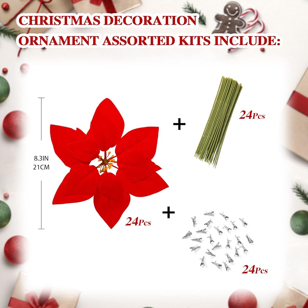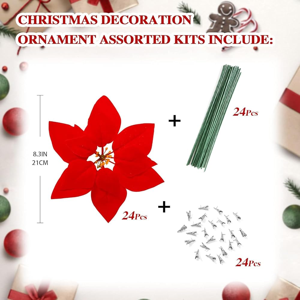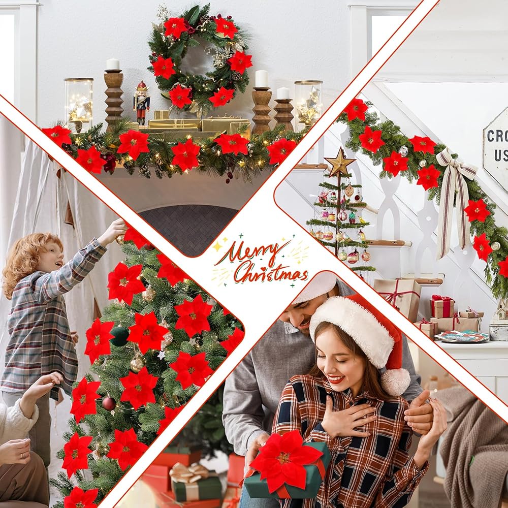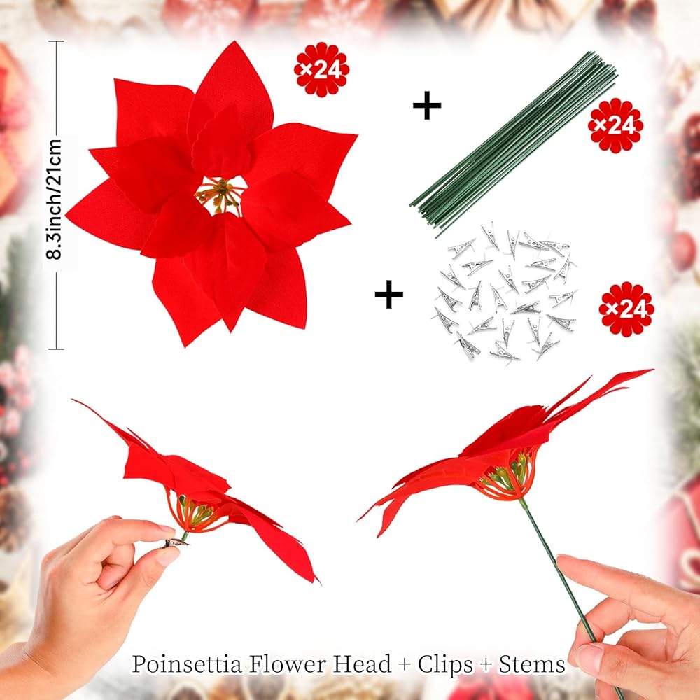 • [Red Poinsettia Bushes]there are 24 Poinsettia heads in each pack, Sufficient for your holiday and family Christmas crafting projects ,helps to brighten up your festive displays.