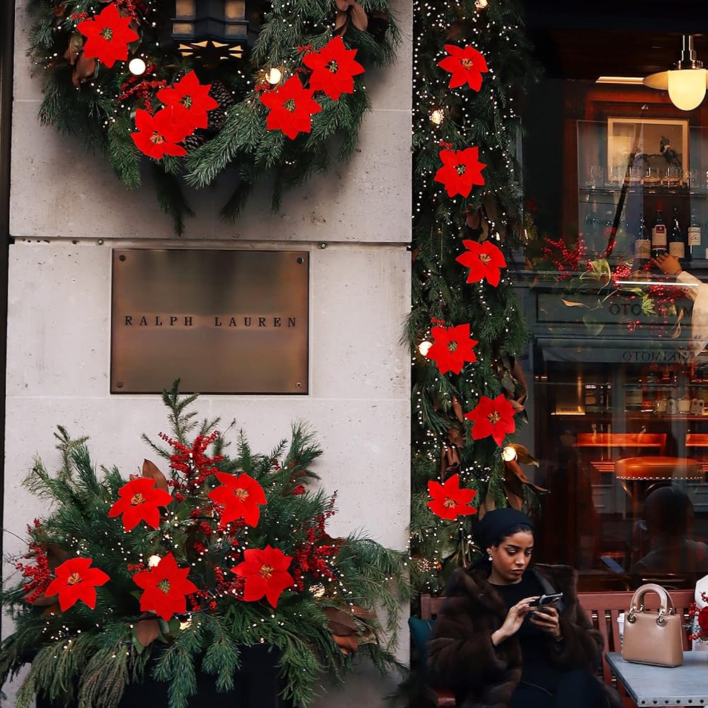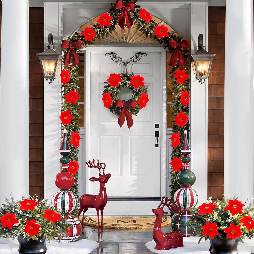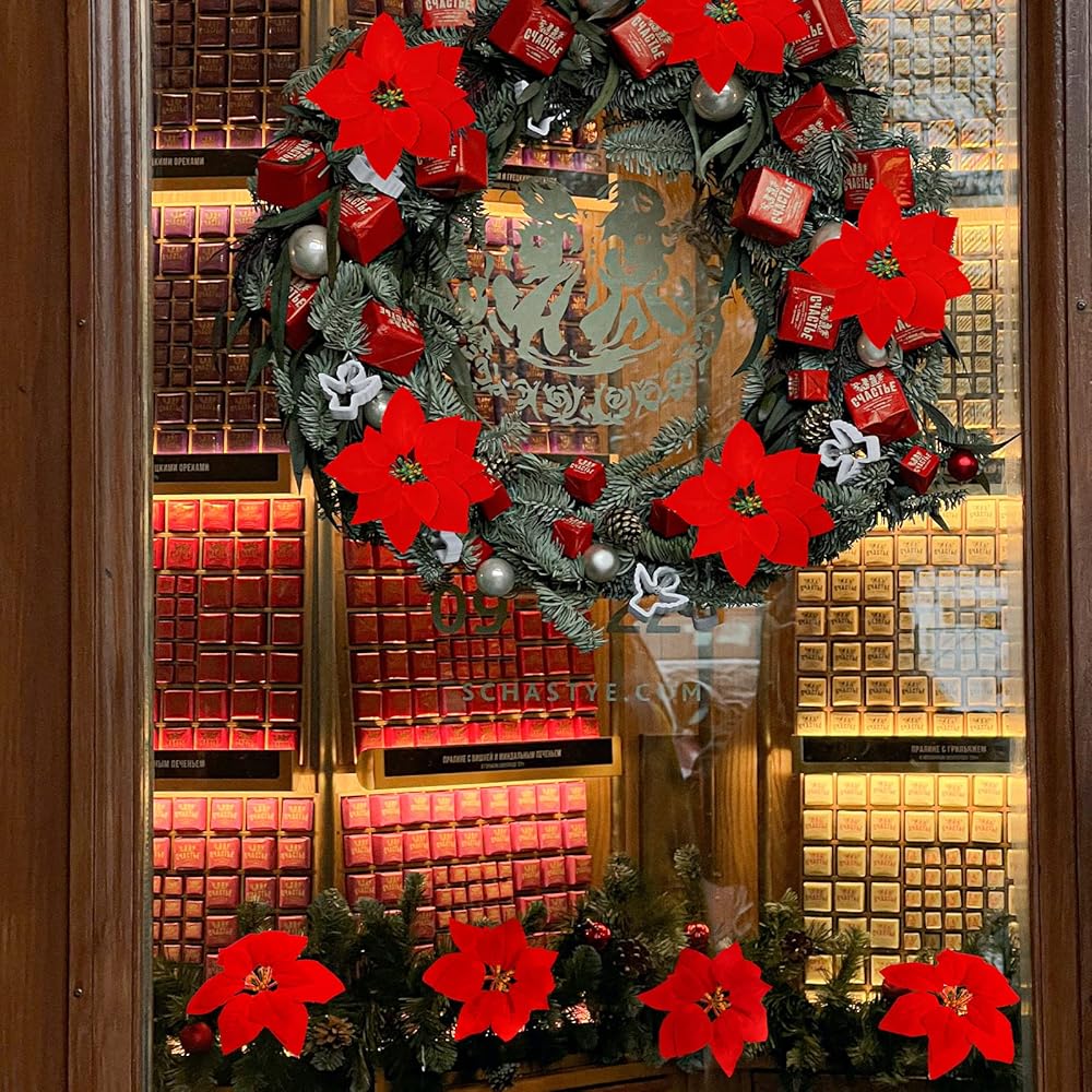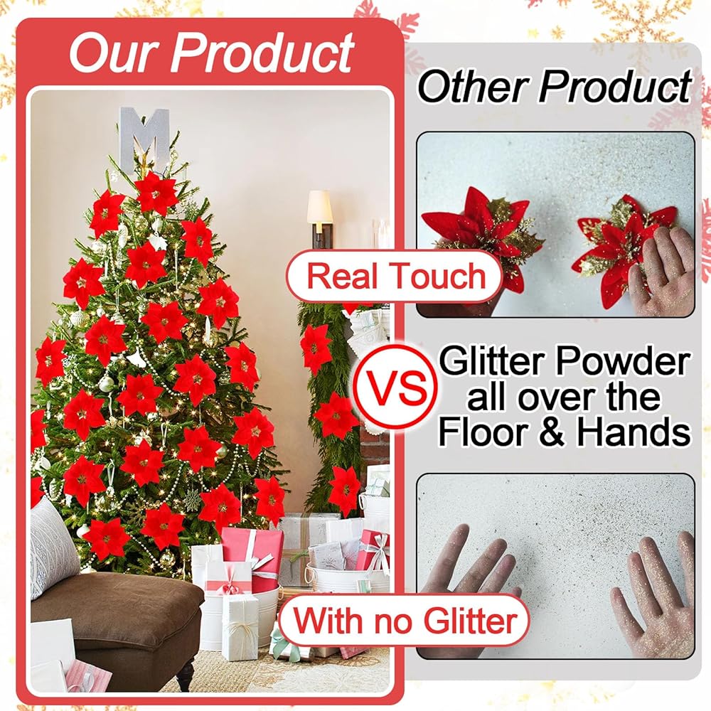 • [Christmas Flowers]:The red Poinsettias flowers heads are made of silk fabric, the diameter of the flower head appr. 20cm (8inch) in diameter.