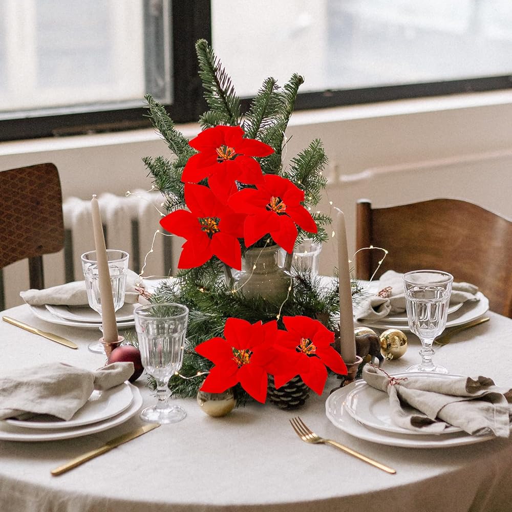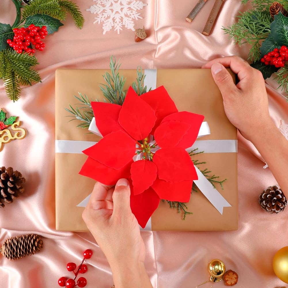 Artificial Red Poinsettia Christmas Flowers Heads Fake Floral Decorative Ornament for X'mas Tree Wreath Decor Holiday Decoration