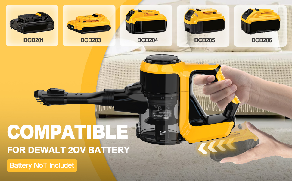 مريحة وتدوم طويلاً: صُممت المكنسة الكهربائية الخاصة بنا لتحقيق أقصى قدر من الراحة، وهي متوافقة مع بطاريات DeWALT مثل DCB200، وDCB201، وDCB203، وDCB204، وDCB205، وDCB206 (البطارية غير متضمنة!!). تم تصميمه بمواد عالية الجودة وتكنولوجيا متقدمة، مما يضمن المتانة والأداء طويل الأمد.