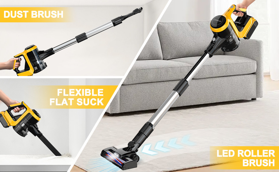 تصميم متعدد الاستخدامات 6 في 1: يمكنك التبديل بسهولة بين الأوضاع للتعامل مع الأسطح والفوضى المختلفة. بدءًا من اللمسات النهائية السريعة وحتى جلسات التنظيف العميق، تعد المكنسة الكهربائية لدينا هي الحل الشامل لمنزل نظيف.