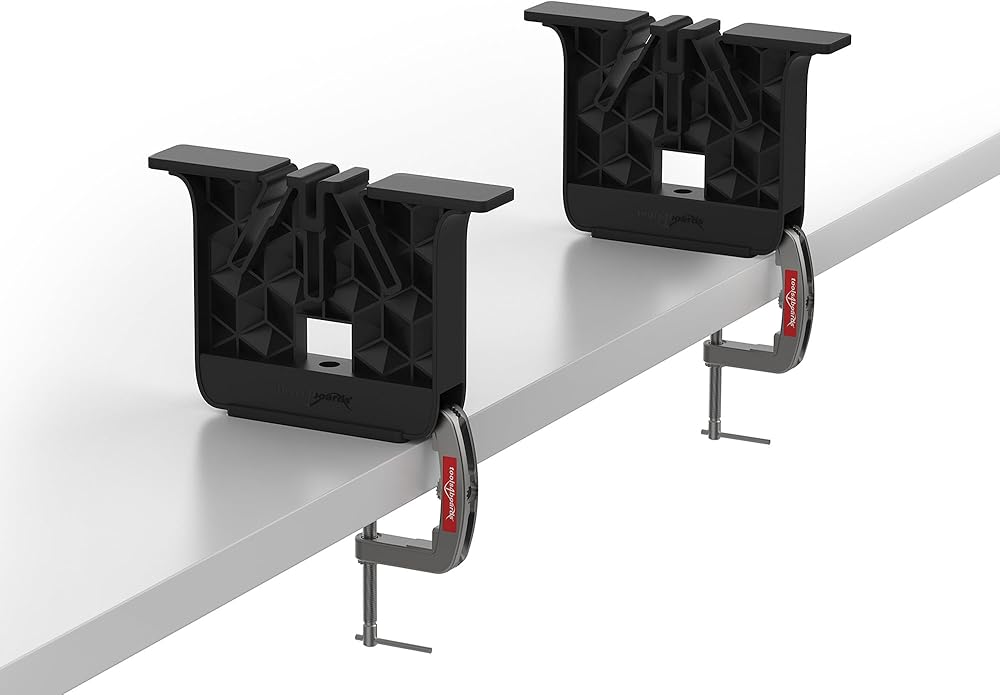 Use Fix metal c-clamps (provided) to securely fasten supports to any tabletop with a thickness of 2 ½" (635 mm) or less, or use any length 6" (150 mm) bar clamp (sold separately) for thicker tabletops. Compatible with Tools4Boards Lightning Stand, Lite Stand or Tool Mount Rail for quick length adjustment using T-bolts with adjustable knobs (sold separately) for quick length adjustment