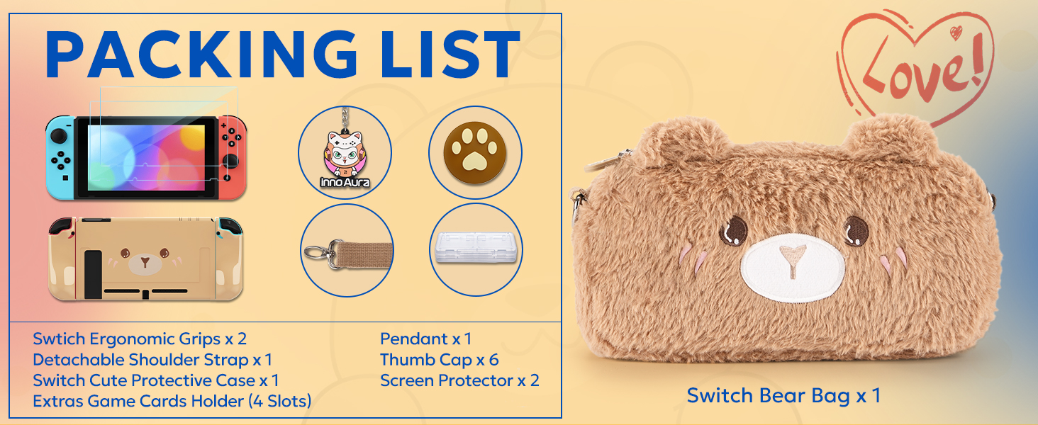 【حزمة مفاتيح NS 18 في 1】- تتضمن حزمة ملحقات المحول هذه ما يلي: حقيبة حمل التبديل × 1، غطاء Switch Joycon × 2، حافظة حماية التبديل القابلة للإرساء × 1، حامل التبديل × 1، حافظة ألعاب التبديل × 1، واقي شاشة التبديل × 2 ، تبديل مقابض الإبهام × 6، ملصق التطريز × 2، قلادة لطيفة × 1، قلم التبديل × 1. تلبية جميع احتياجاتك الأساسية لملحقات المفاتيح