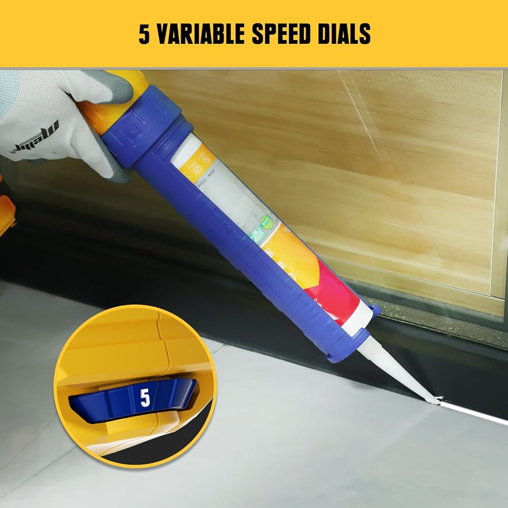 قوة دفع قوية وتحكم في 5 سرعات: مع قوة دفع قصوى تبلغ 900 رطل و5 سرعات متغيرة، يسمح لك مسدس السد بالتحكم في معدل التدفق من 0 إلى 20 بوصة/دقيقة، لتحقيق تحكم أكثر دقة وقوي بما يكفي للتعامل مع معظم المواد اللاصقة والسد.