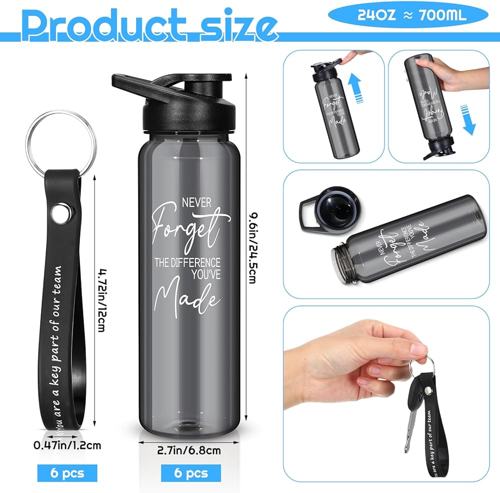 • Gratitude and Motivation Inspired Gift Set: this gift set includes 6 reusable plastic water bottles and 6 motivational keychains, suitable for showing appreciation to friends, family, colleagues, or team members; These items make the ideal gift for special occasions