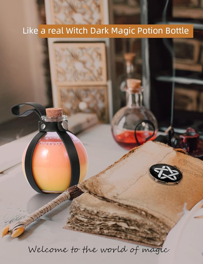【Perfact for Halloween Decor and Witch Costume】Glass bottles with beautiful potions always surprise people, so why not give it a try? they are the best for you.Halloween decor,witch costume,cool gift for kids and adults.