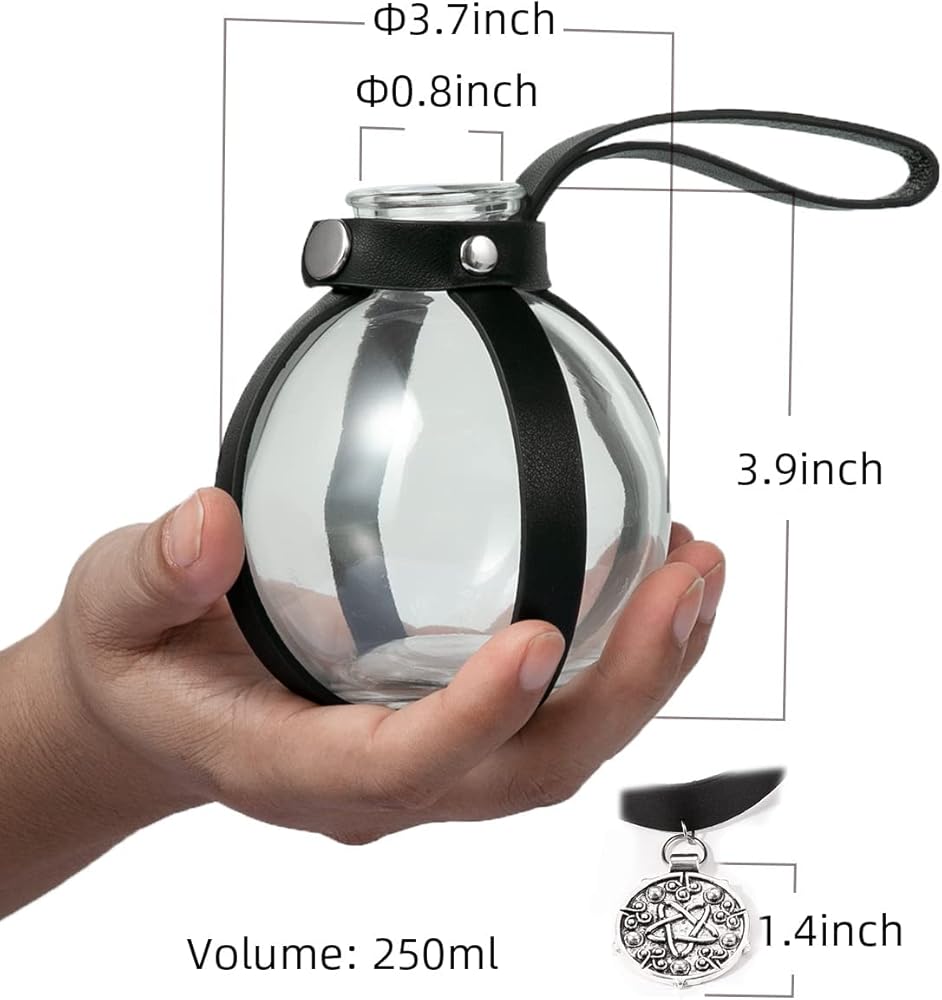 【Size of Dark Magic Props】Potion bottles with cork tall 3.9",diameter 3.7".Necklace diameter 1.4".Adult can easy to hold it.