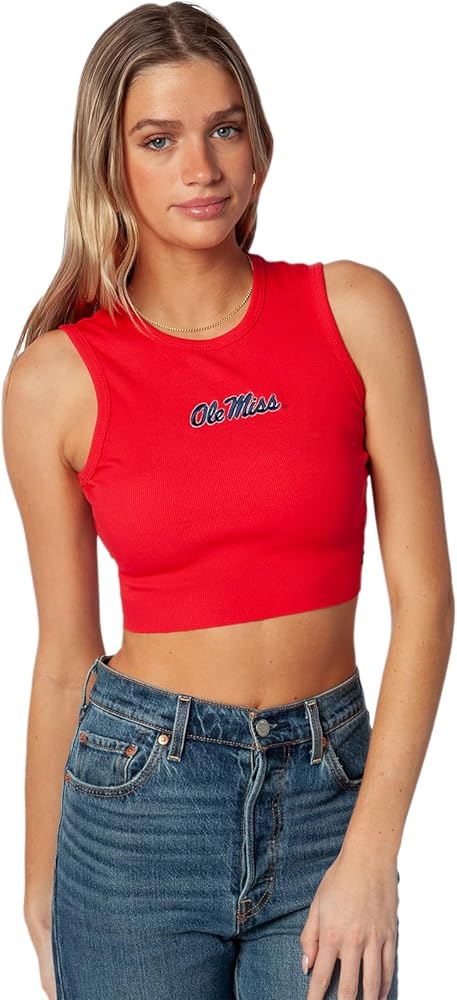 تانك Hype & Vice للنساء (كبير) - قميص جامعة ميسيسيبي للنساء، تانك توب قصير، قمصان جامعية لأيام اللعب - أحمر