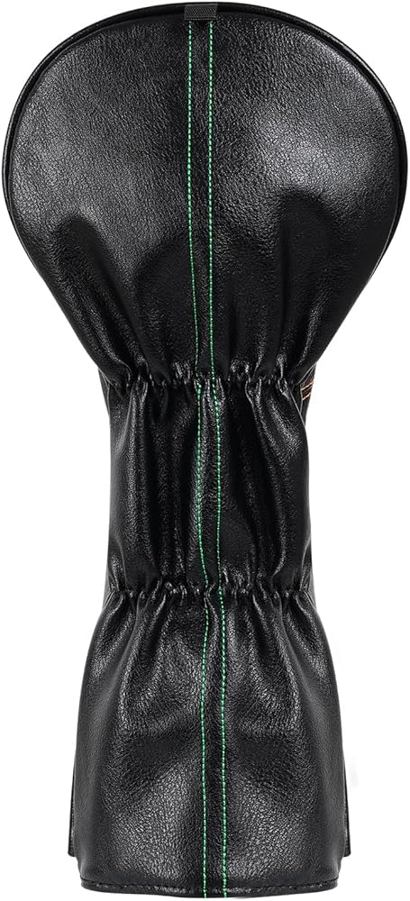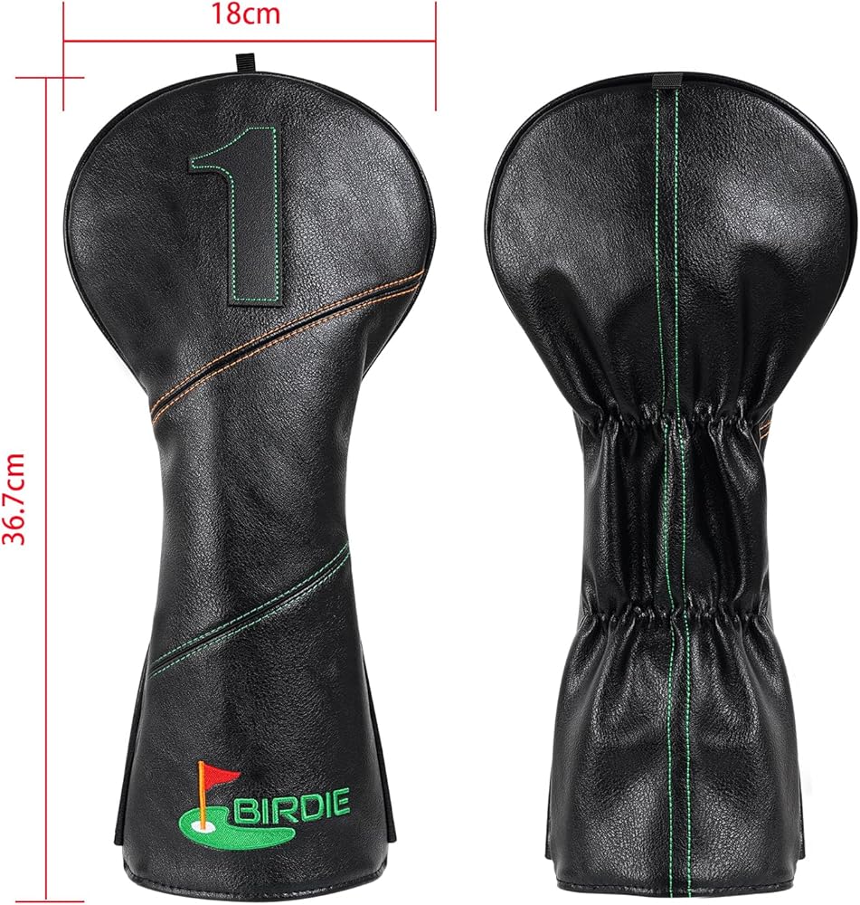 Golf Green Birdie Black Head Covers for Driver & Fairway Woods Hybrids Premium Leather Headcovers