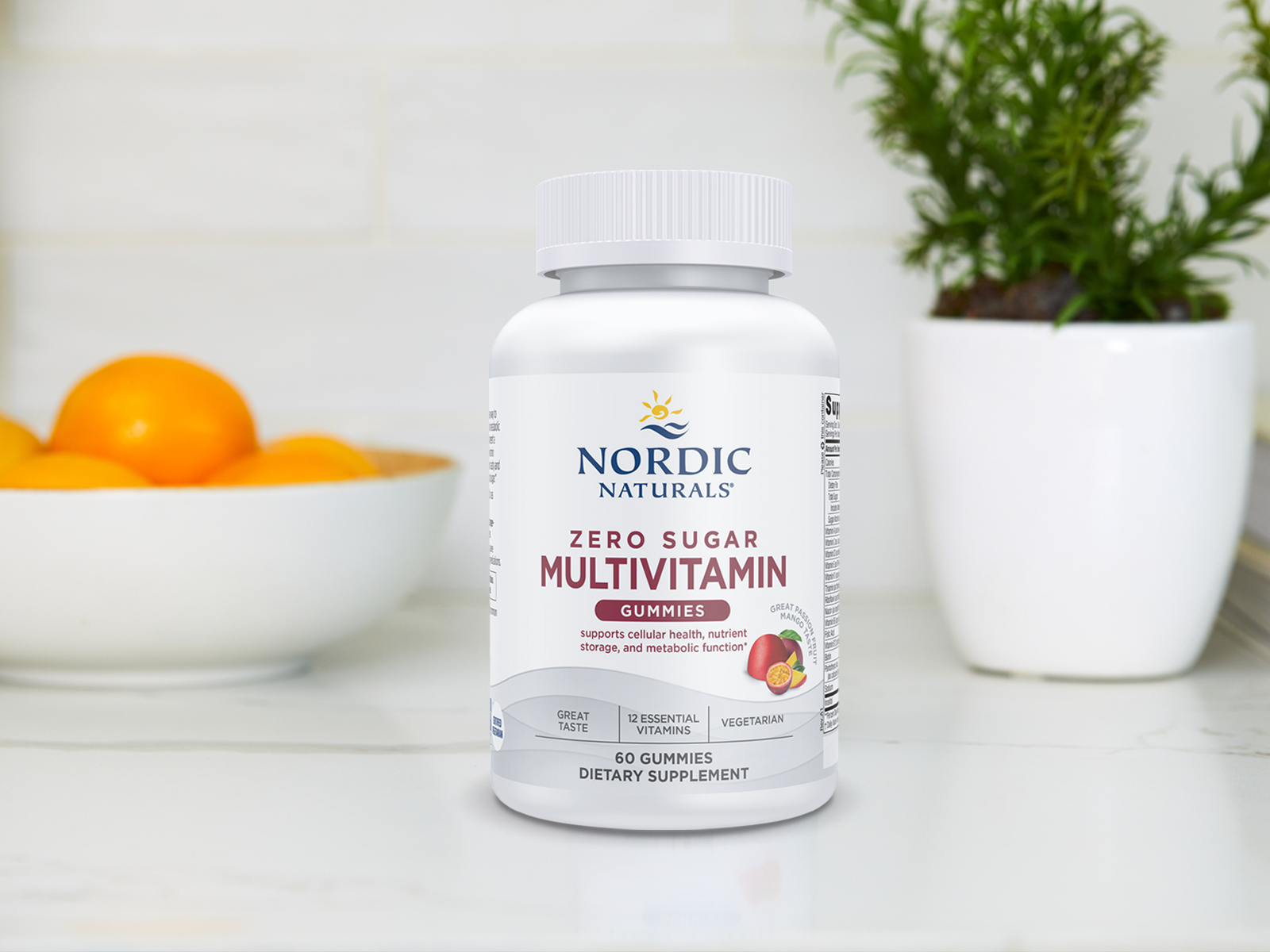 علكات متعددة خالية من السكر من Nordic Naturals - مكمل نباتي متعدد الفيتامينات - مانجو فاكهة العاطفة - 60 علكة قائمة على البكتين - 12 فيتامين أساسي للبالغين - غير معدلة وراثيًا - 30 حصة