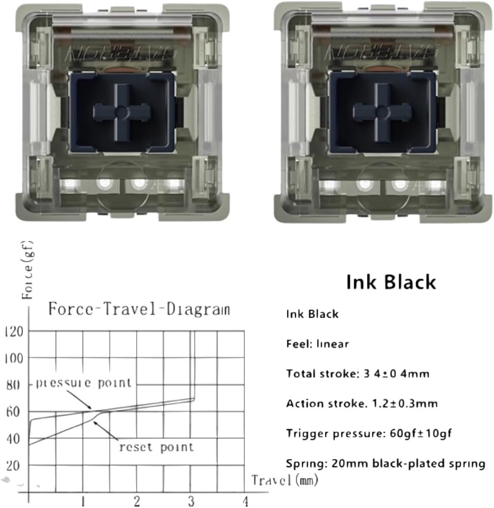 [الميزات]: مفتاح خطي (مستقيم لأعلى ومستقيم لأسفل)، زنبرك ممتد مطلي باللون الأسود مقاس 15.4 مم للتحفيز السريع، والارتداد السريع، والسلس والمستقر، وصلات ذهبية جديدة مضادة للأكسدة، وأداء محسن مضاد للأكسدة، وعمر خدمة ممتد. على أساس الحبر الأسود العادي، تمت إضافة هيكل الجدار لجعله أكثر استقرارًا وأكثر تماشيًا مع غطاء المفاتيح.