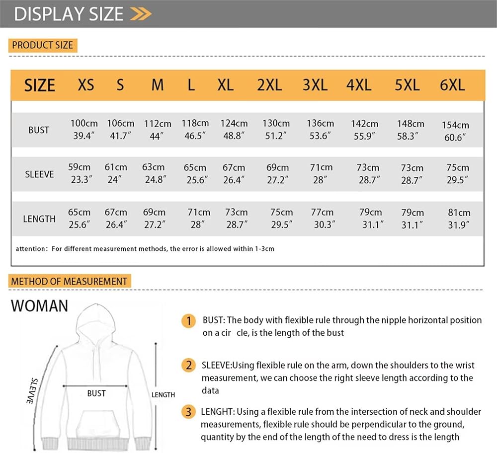 Size: XS, S, M, L, XL, 2XL, 3XL, 4XL, 5XL, 6XL; Please refer to the size chart before purchase.10 Sizes Available, please allow 1-3cm differs due to manual measurement