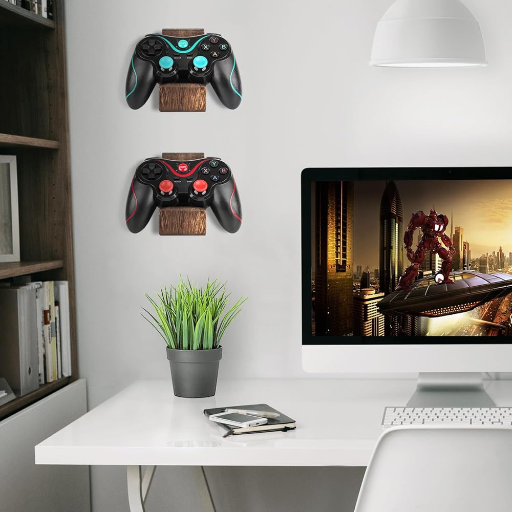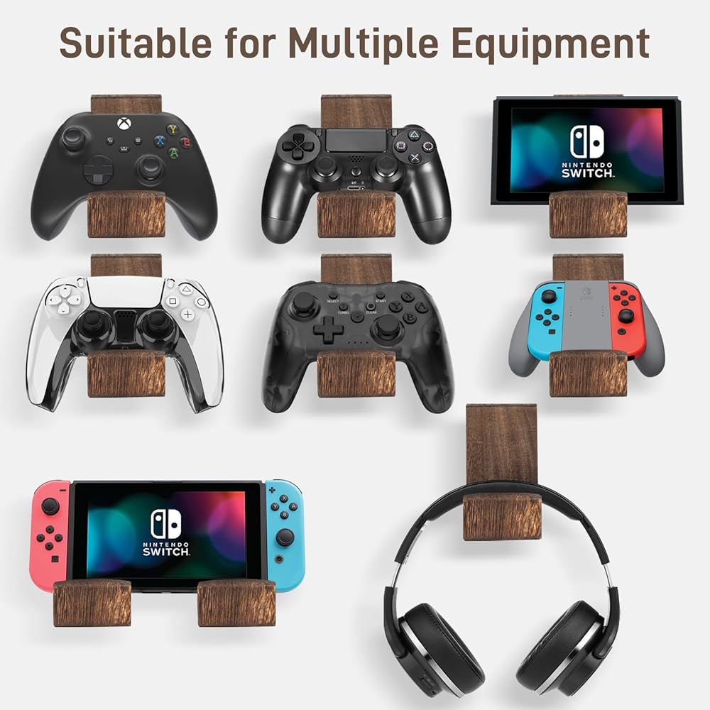 حامل وحدة التحكم في الألعاب مثبت على الحائط، حامل سماعة رأس عالمي لملحقات أجهزة الكمبيوتر الشخصية، حامل سماعة الرأس لسلسلة Xbox PS5 PS4 بواسطة تثبيت لاصق خشبي أو براغي تثبيت 2 حزمة