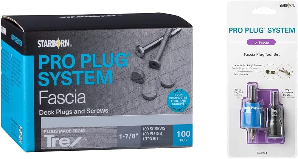 The Pro Plug System for Fascia is the companion system to the Pro Plug System for PVC/Composite decking. This system allows you to install your fascia board the same way you have installed your deck boards. The system requires the Pro Plug for Fascia tool set. There is a Fascia Plug tool that predrills the hole for the plug and the PVC/Composite tool that acts as a depth setter for the screw. Required for installation- included in this kit.