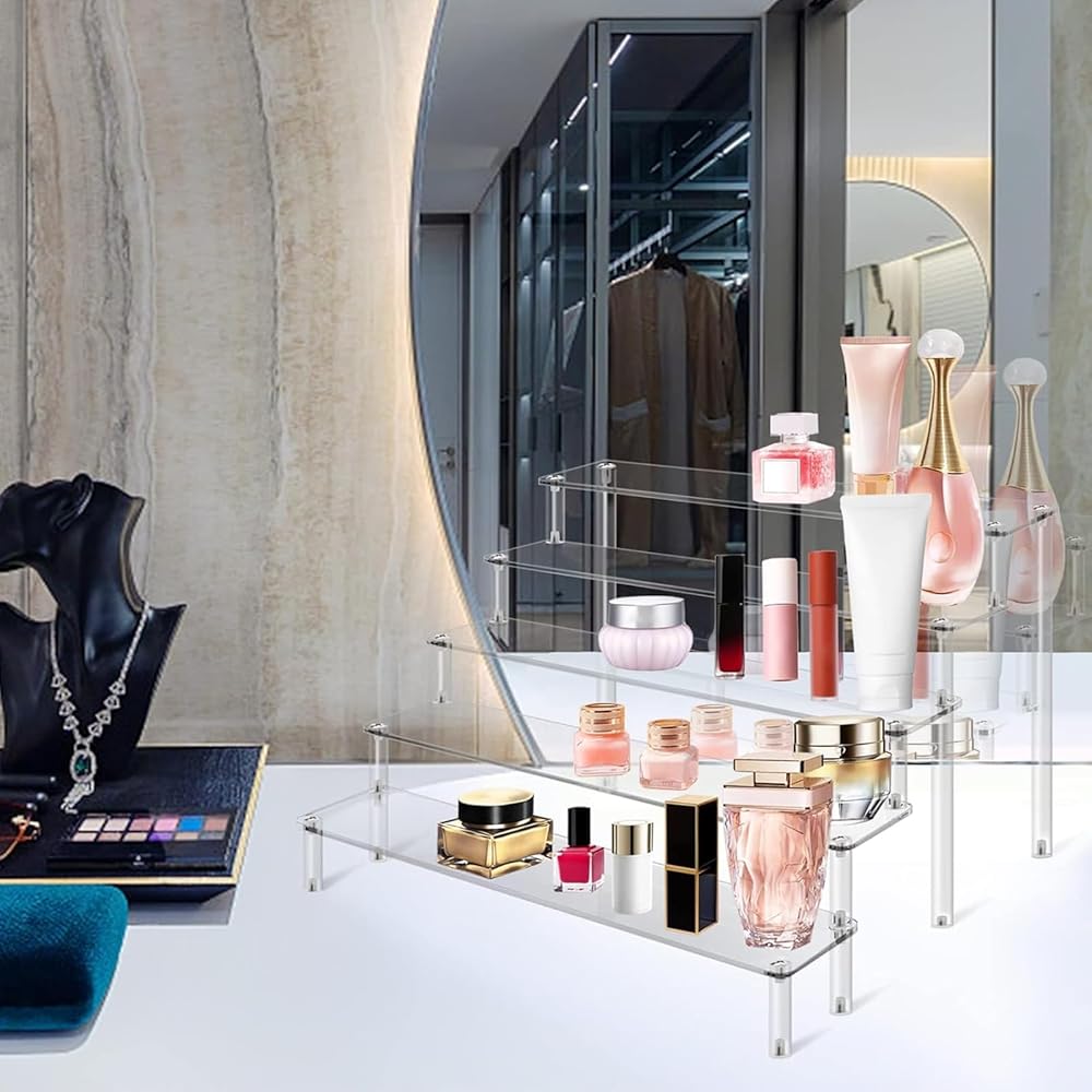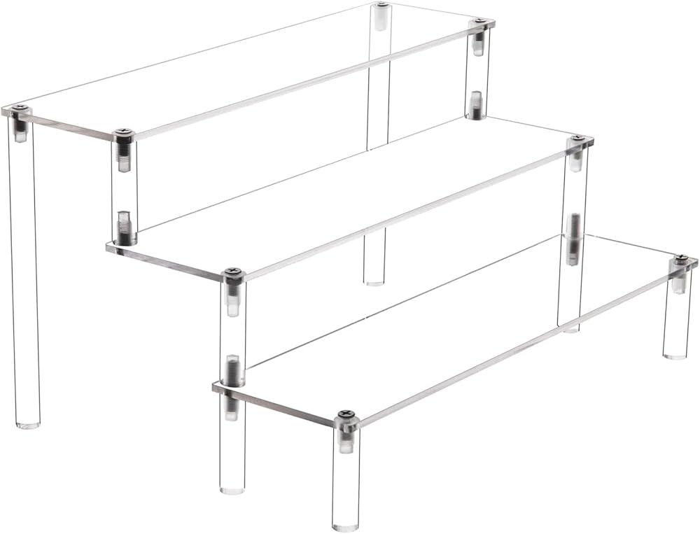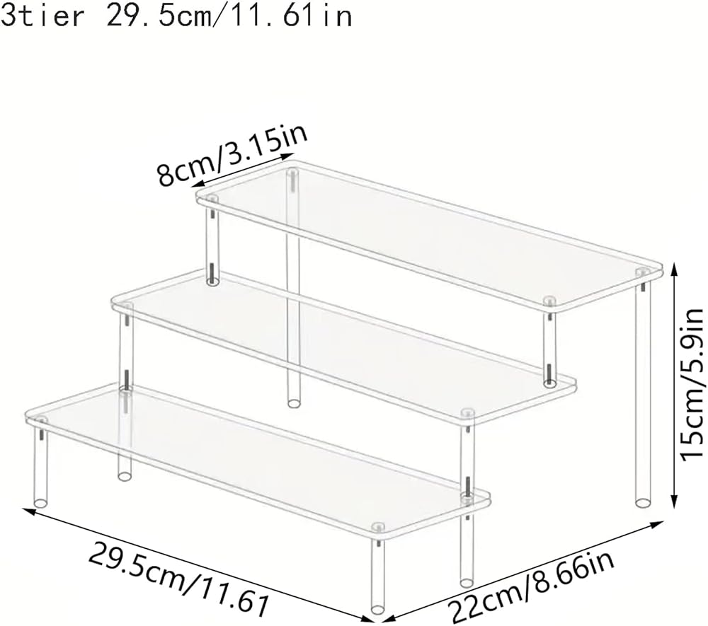 • عرض متعدد الاستخدامات: حامل أكريليك ثلاثي الطبقات مثالي لعرض وتنظيم العطور والأشكال والحلويات ومواد الديكور.