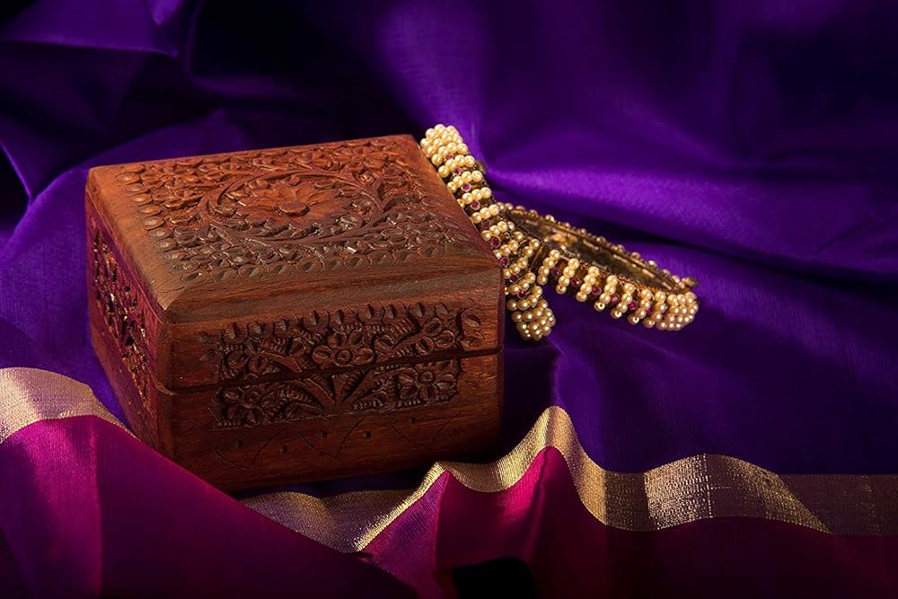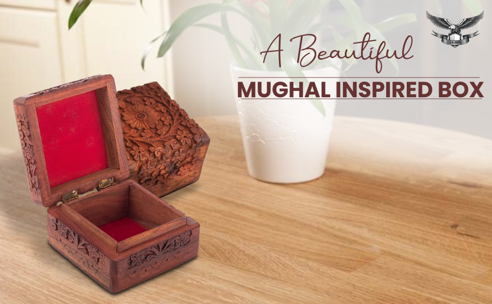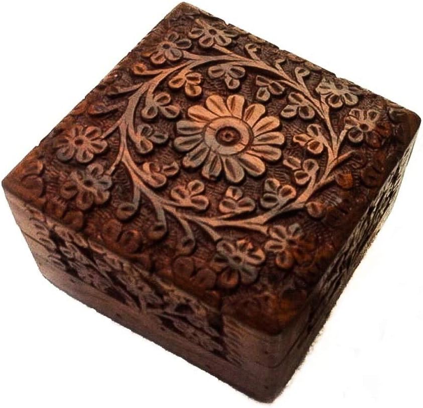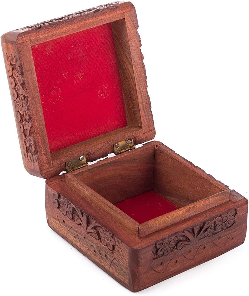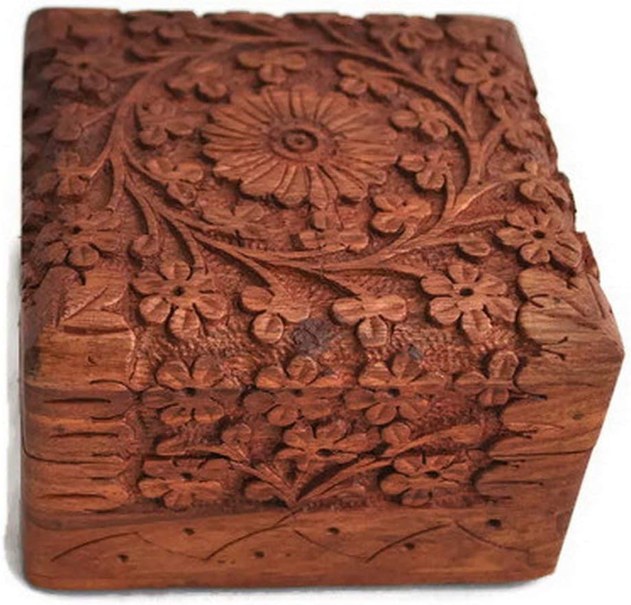 التصميم: يتميز صندوق التذكار الخشبي المصنوع يدويًا بتصميم زهور جميل منحوت في الغطاء المفصلي ولمسة نهائية من اللون البني إلى البني الذهبي لإضفاء مظهر كلاسيكي عتيق.