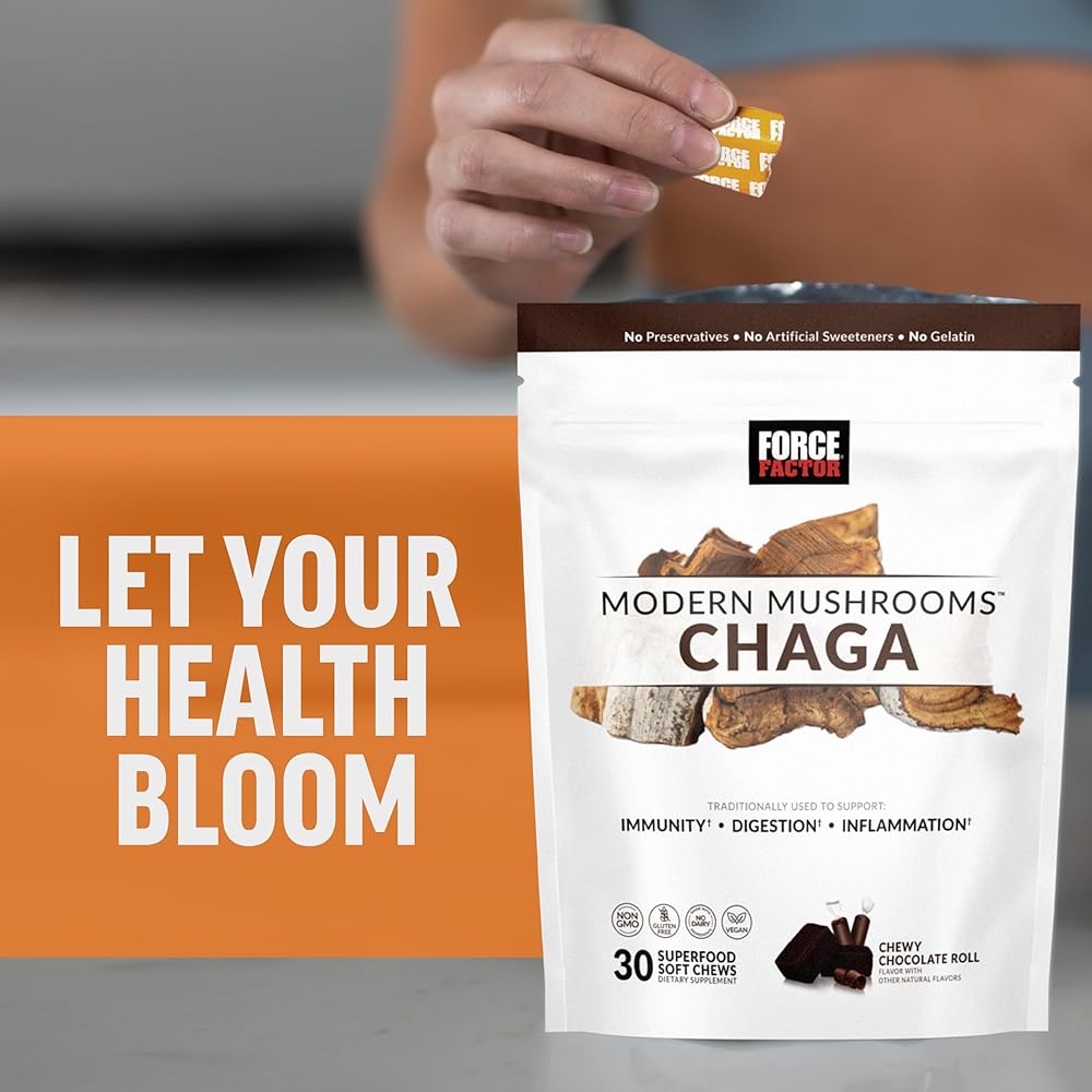 • DELICIOUS & CONVENIENT: Modern Mushrooms deliver the natural power of chaga mushroom supplement in a great-tasting soft chew with no mushroom taste! Best of all, they're individually wrapped and mess free for on-the-go convenience.