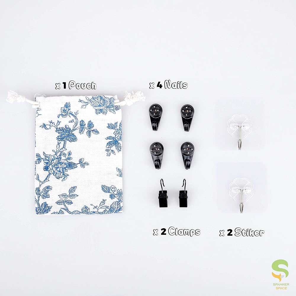 【Complete Package】includes x1 tapestry and essentials (2 pothooks, 2 clamps, and 4 nails). Handle nails with care.