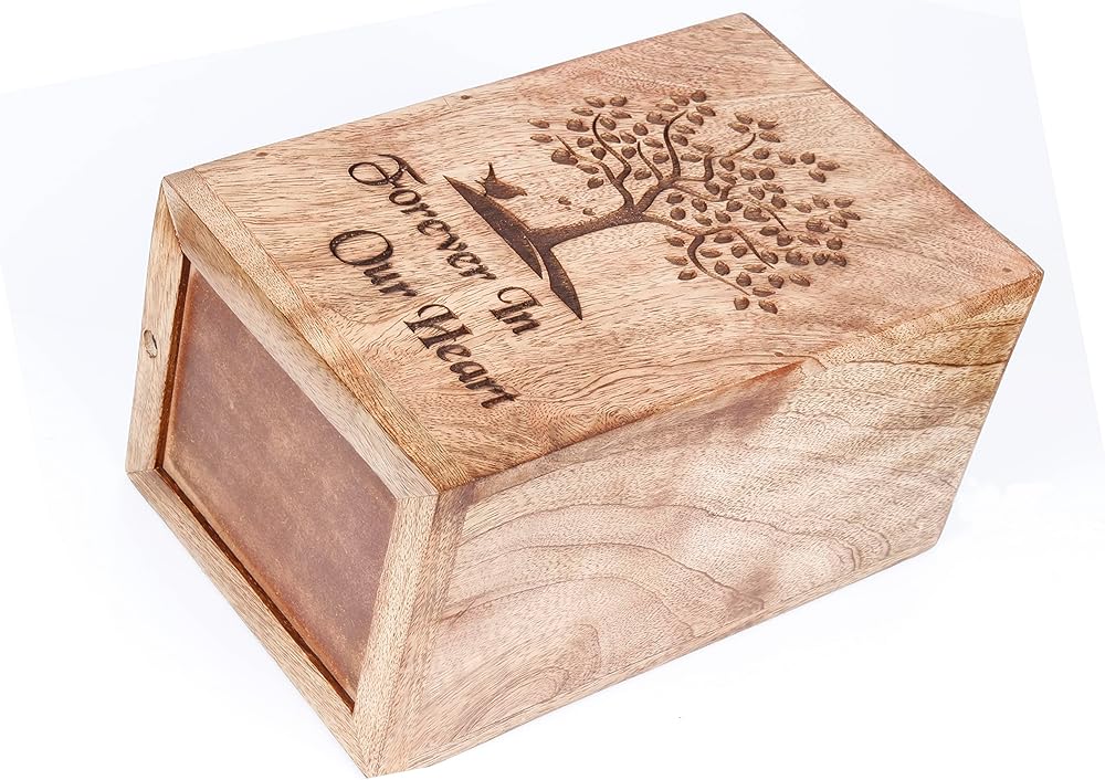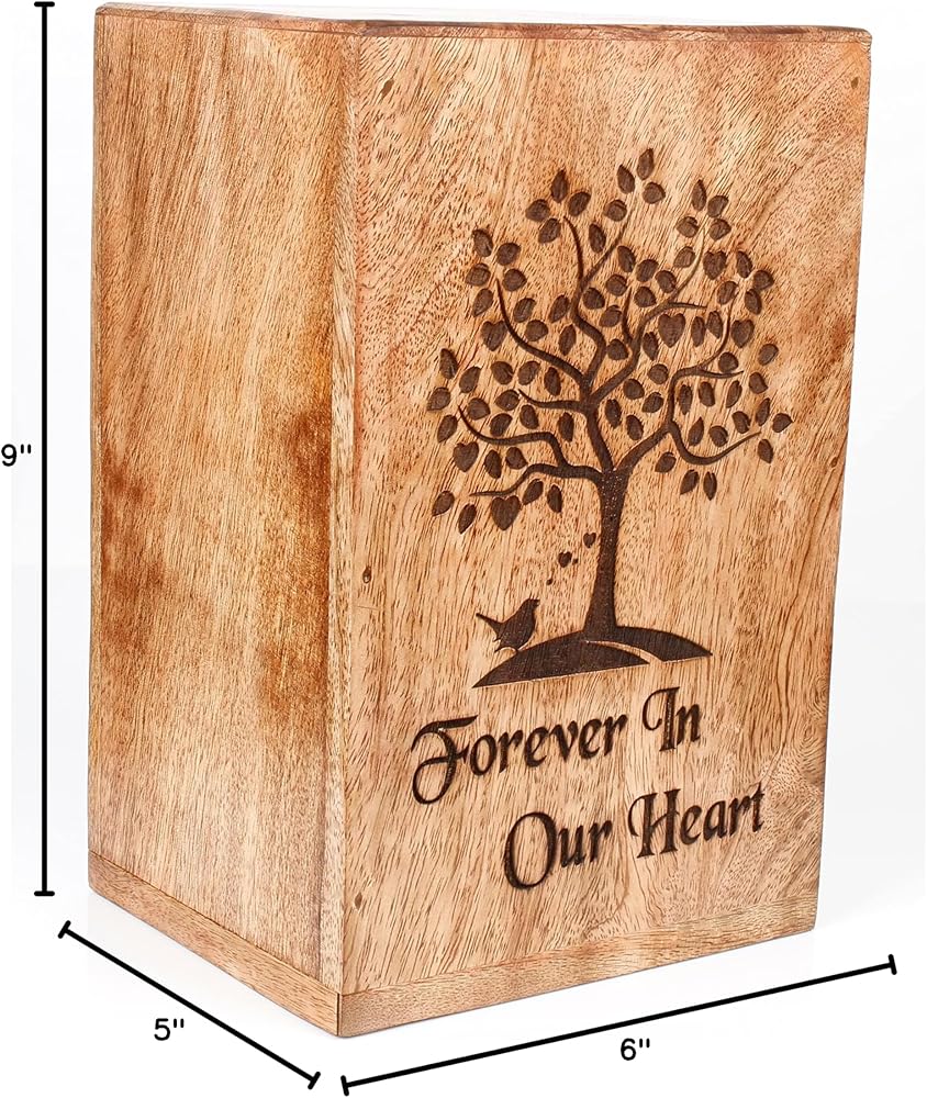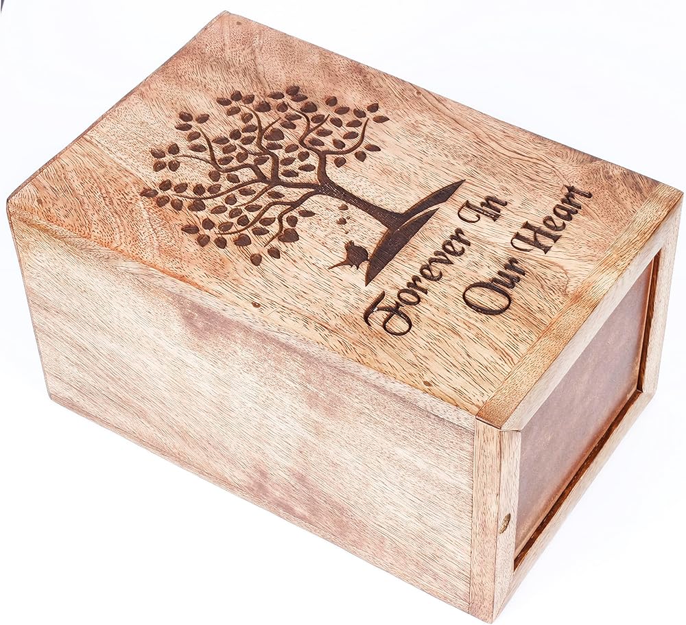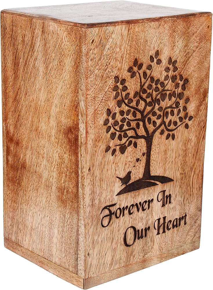 TrendBell Wooden Urn Box for Human Ashes, Cremation Funeral Urns Box, Pet Memorial Urns, Decorative Urn, Cat Infant Adult Urn, Keepsake Burial Ash Box