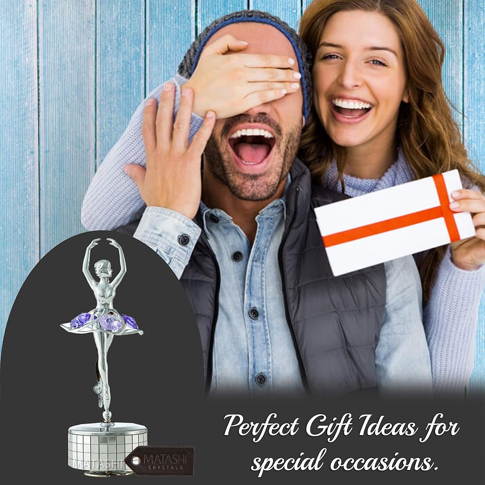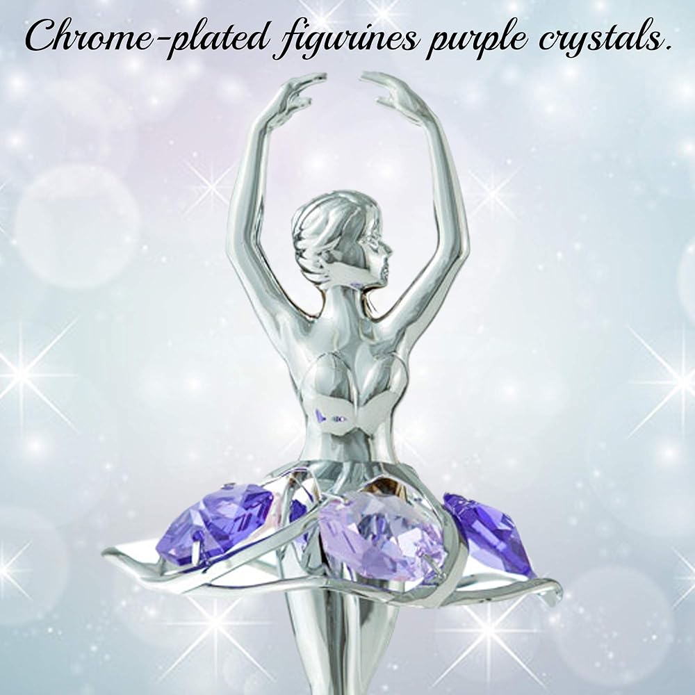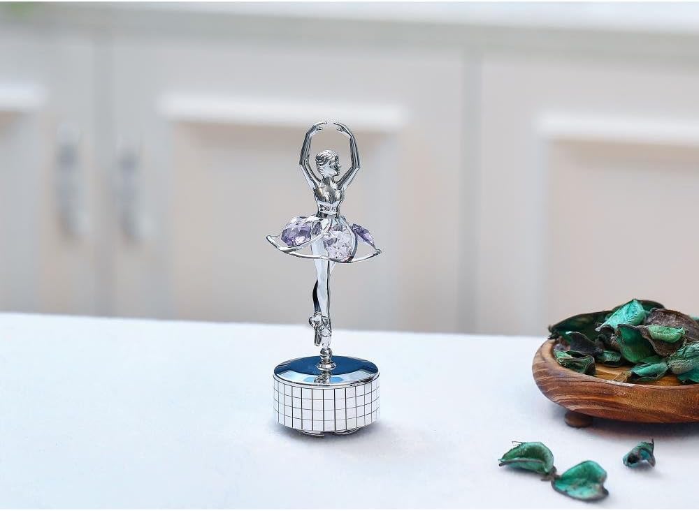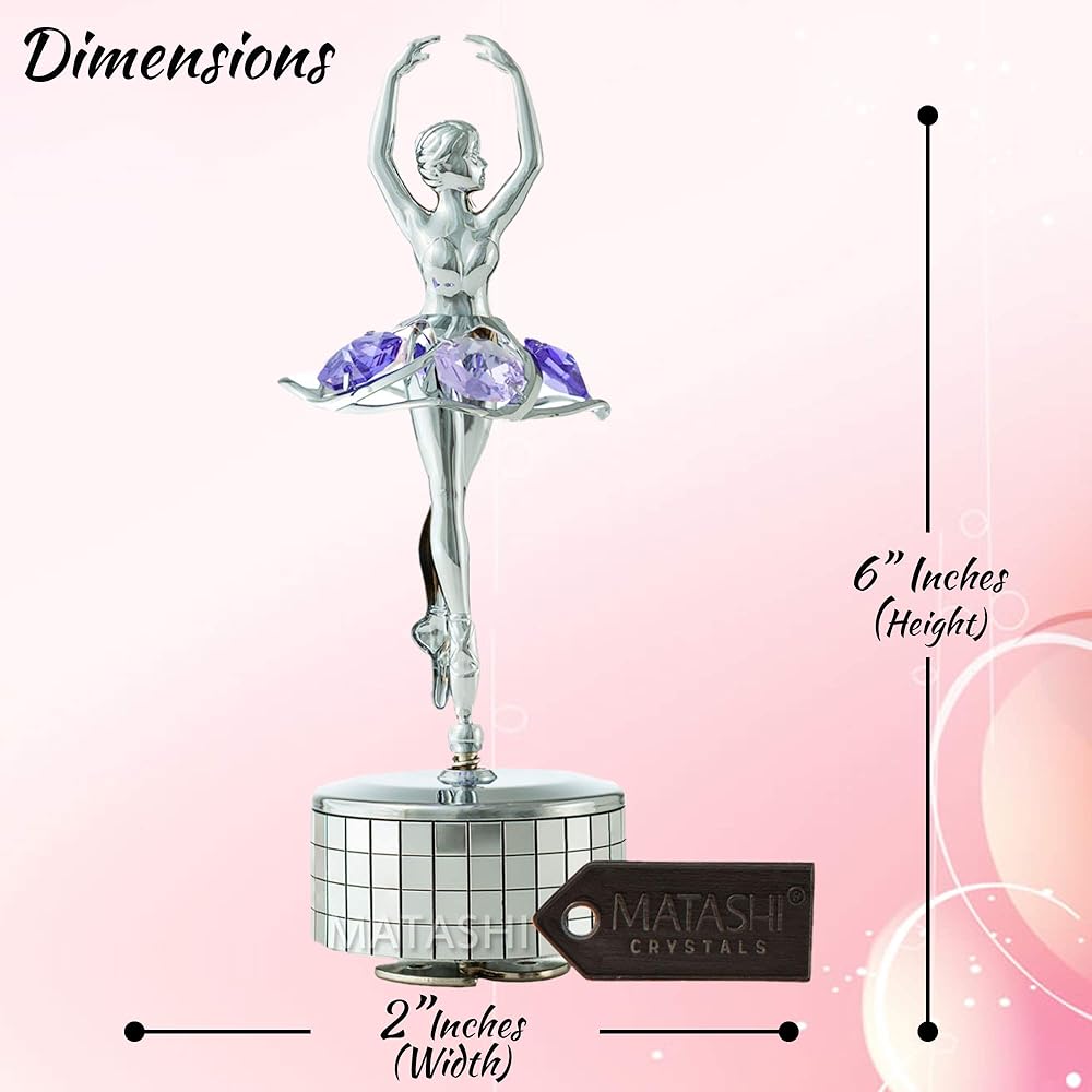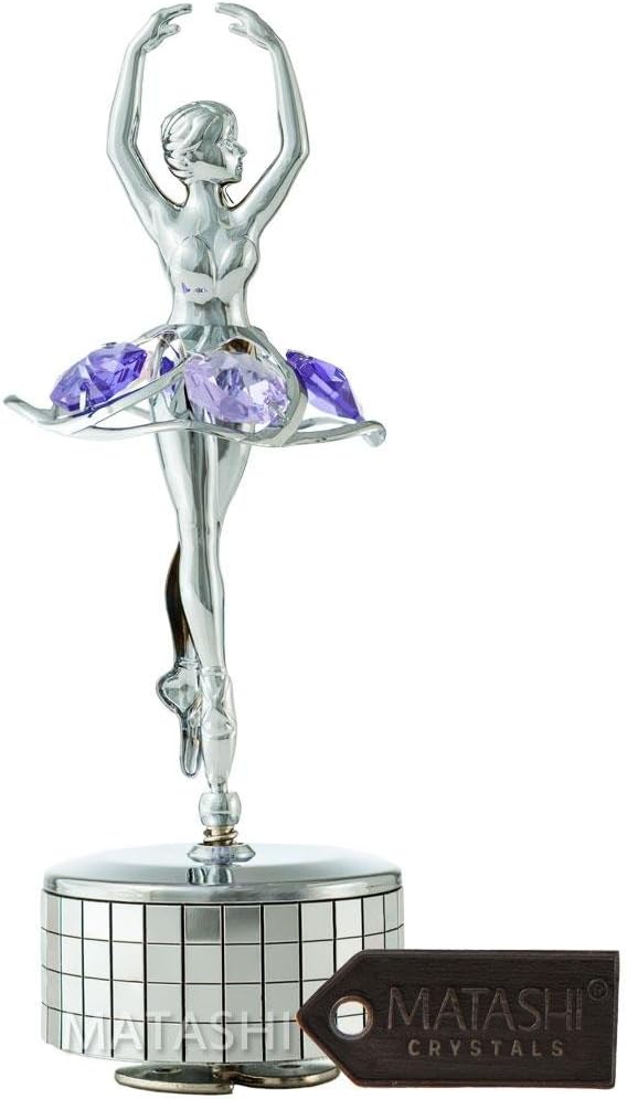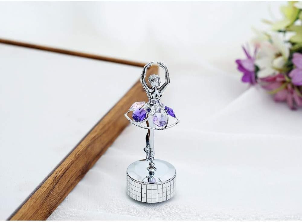 صندوق موسيقى ماتاشي لراقصة الباليه المطلي بالكروم مع كريستالات أرجوانية، ديكور منزلي لغرفة النوم، زينة على سطح الطاولة هدية للزوجة الموسيقية والأم في عيد الأم وعيد الميلاد وعيد الحب (الذاكرة)