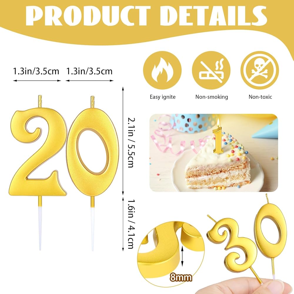 • Wide Applications: these gold number candles are suitable for birthdays, baby showers, anniversaries, retirement parties, family parties, weddings, Hawaiian parties and bachelor parties; You can use these 28 numbers to combine into different ages