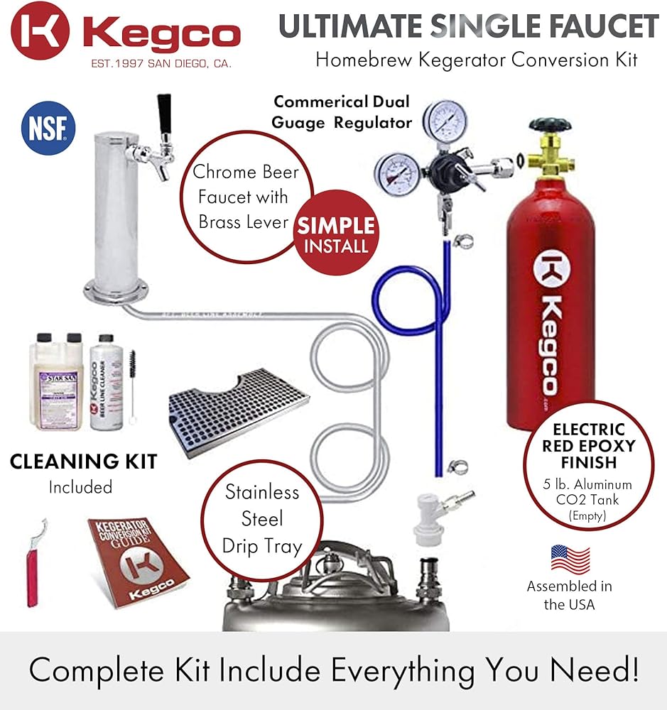 The Kegco's Ultimate Tower Conversion Kit contains everything you'll need to quickly and easily convert a refrigerator or freezer into a home brew beer dispenser. This kit includes a 3" diameter stainless steel draft tower that makes it perfect for use in outdoor applications, and comes with ball lock keg couplers that allow you to tap Cornelius Pepsi kegs. The Ultimate Tower Conversion Kit include high quality commercial-grade parts like an intuitive dual gauge regulator, but Kegco has also thrown in a stainless steel drip tray and a 32 oz. bottle of beer line cleaner, 16 oz. bottle of Star San, and faucet brush to keep your entire dispense system clean, ensuring the best tasting beer. All Kegco kits come with detailed instructions to take you through the conversion process.