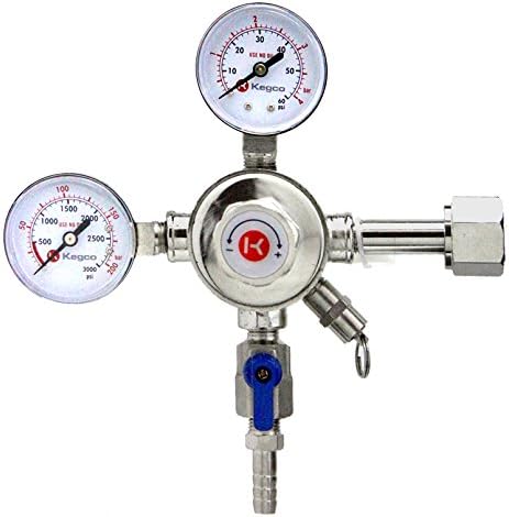Kegco dual gauge regulator features a gauge for output pressure and another to tell you the remaining Co2 volume