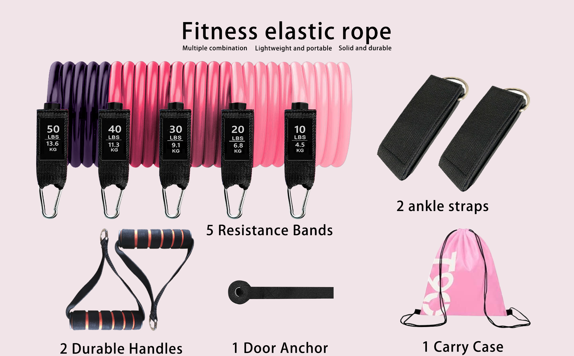 ⭐ باب حبل المقاومة: تتضمن هذه المجموعة مرساة باب حبل المقاومة، والتي تسمح لك بالتدريب في أي مكان وفي أي وقت والحصول على أقصى استفادة من روتين التمرين.