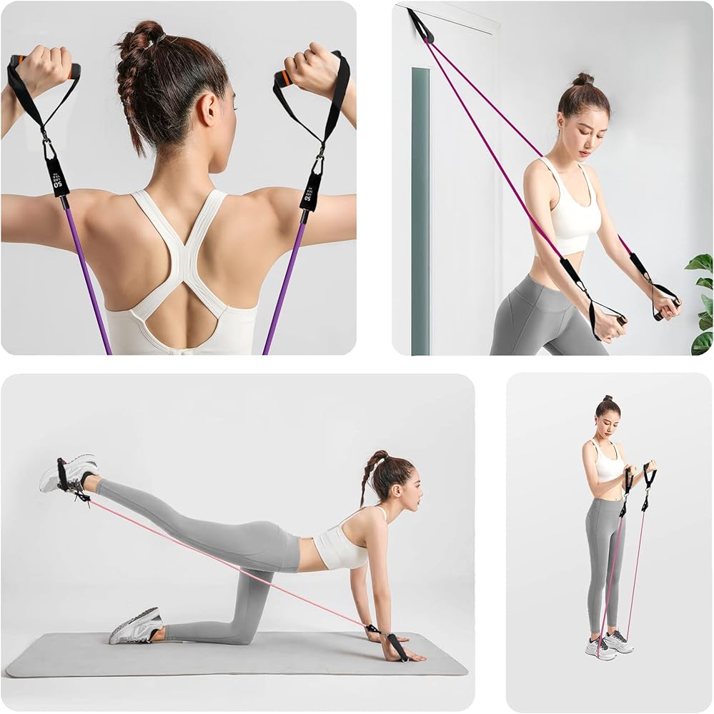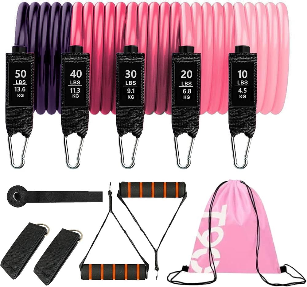 ⭐ أربطة مقاومة للنساء: هذه الأربطة مثالية للنساء من جميع الأعمار ومستويات اللياقة البدنية لتحقيق تمرين كامل الجسم مع مستويات مقاومة قابلة للتعديل.