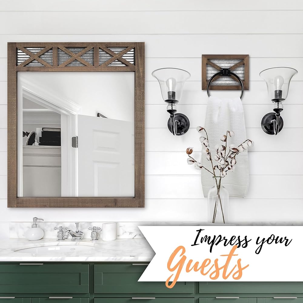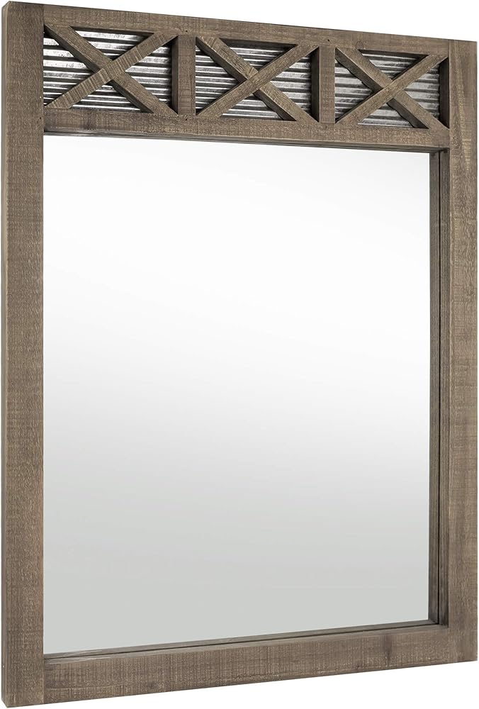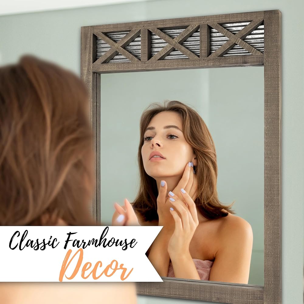 مرآة ديكور ريفية لبيت المزرعة - تتميز بإطار خشبي لباب الحظيرة وحشوة معدنية مجلفنة مموجة، مرآة الحمام الريفية المزخرفة هذه هي إضافة رائعة لأي مرايا حمام للحائط. تتميز هذه المرآة بنمط المزرعة وتبدو رائعة في حمام المزرعة المعاصر أو الصناعي. سيبدو أيضًا ممتازًا فوق الزينة أو على الحائط أو كعنصر زخرفي في غرفة المعيشة