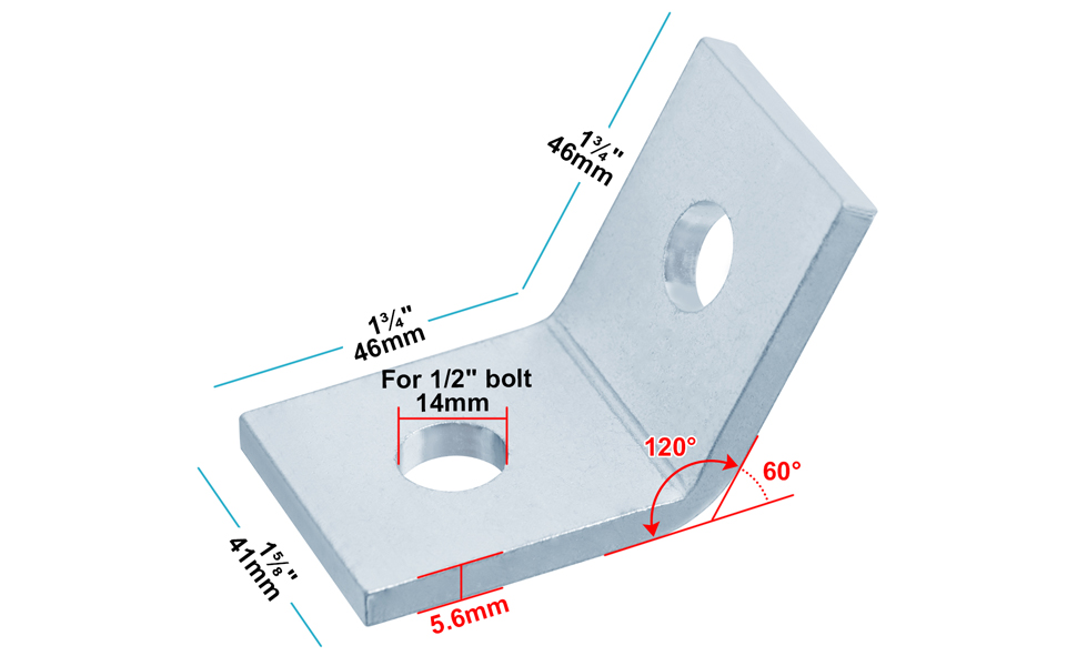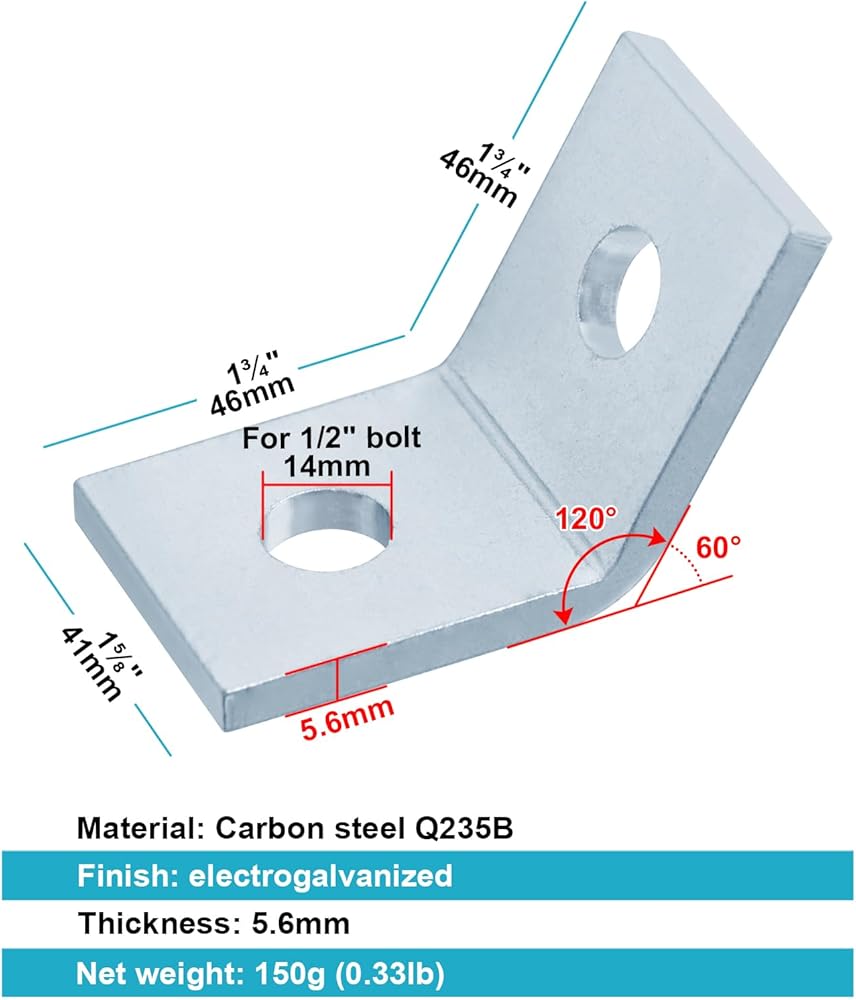 10 عبوات 2 فتحة 60 درجة دعامة زاوية خارجية لـ ½ بوصة في قناة تبختر 1-5/8 بوصة، تركيب زاوية مفتوحة 120 درجة، موصل تأطير دعامة الزاوية، فولاذ مجلفن كهربائيًا، سمك 5.6 مم