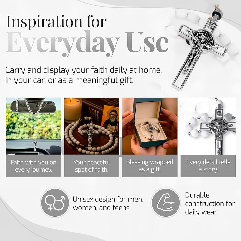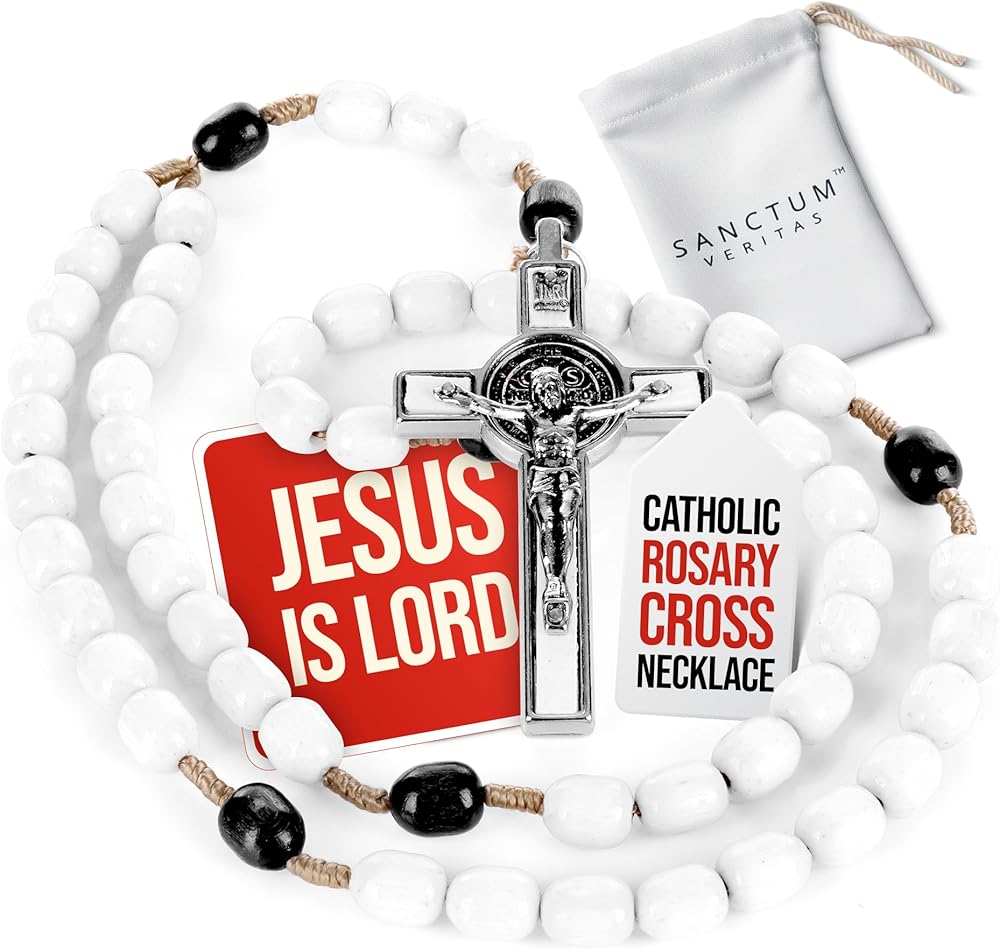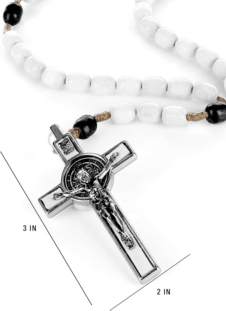 • rosary length* 22inch *(from the end of the cross to the middle of 3rd decade) cross size 1.75" x 0.75" bead size 0.375" x 0.25"