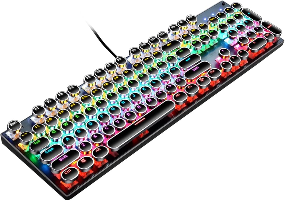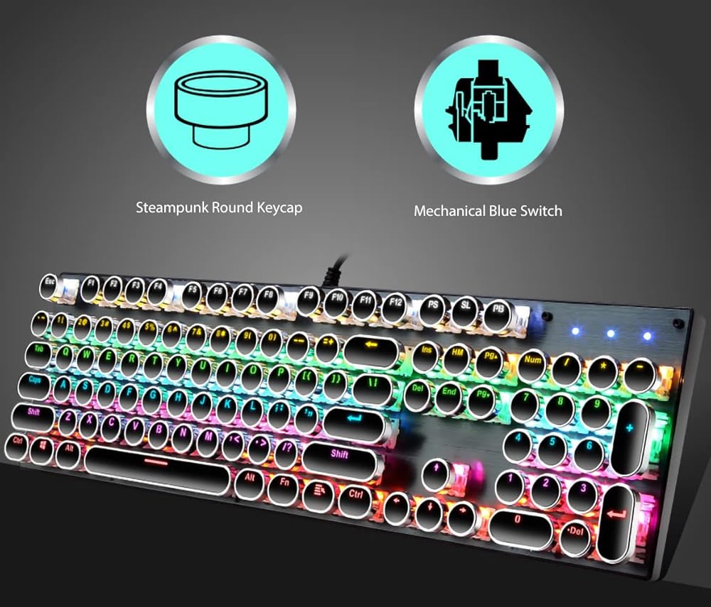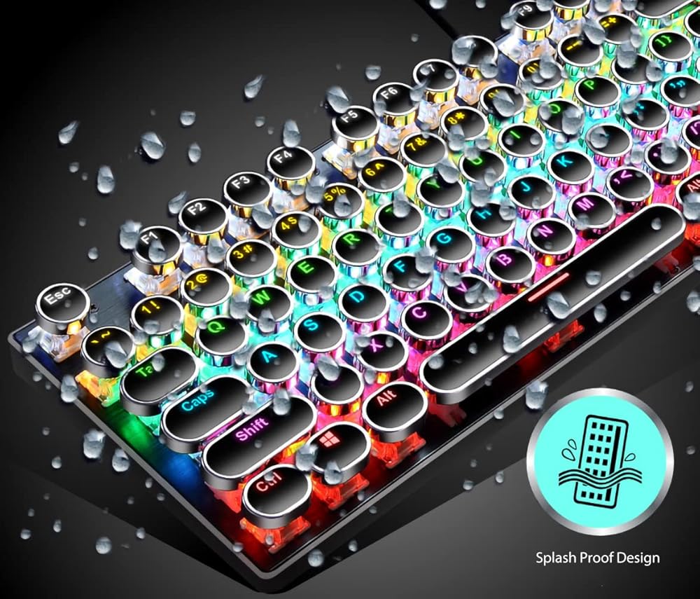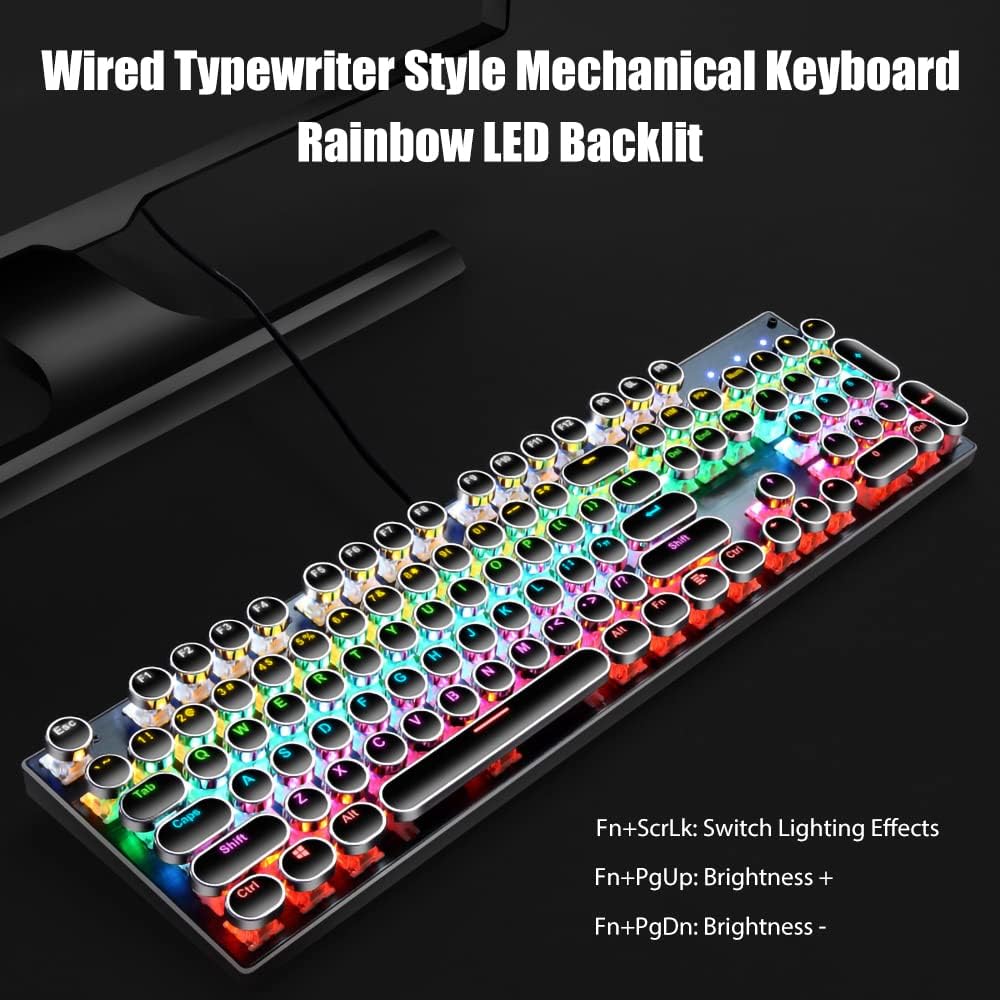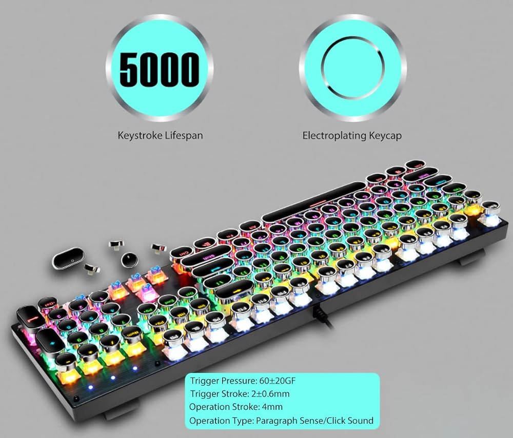 [لوحة مفاتيح بنمط آلة كاتبة جمالية كلاسيكية] - لوحة مفاتيح الآلة الكاتبة هي مزيج من الطراز القديم والتصميم الحديث. تبدو أغطية المفاتيح المستديرة الكلاسيكية المطلية بالكهرباء وكأنها آلة كاتبة كلاسيكية، مما يمنحك شعورًا مريحًا في الكتابة ولمسة نقر ثابتة.