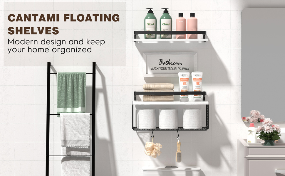 [أرفف حائط متعددة الوظائف] - تم تصميم الأرفف العائمة للتزيين والتخزين، وإضافة مساحة رف إضافية لتخزين وتنظيم الأشياء الصغيرة أو الفوضى في غرفة النوم والحمام والمطبخ والمزيد. يمكنك الاحتفاظ بزجاجات وأدوات التوابل في المطبخ؛ ضع أدوات النظافة والمناشف على هذه الرفوف العائمة في الحمام؛ في غرفة المعيشة وغرفة النوم، يمكنك أيضًا وضع النباتات الصغيرة والجوائز والمقتنيات والكتب والصور وما إلى ذلك. أرففنا ستساعد منزلك على أن يصبح أكثر تنظيمًا وراحة.