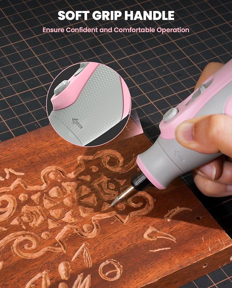 Rotary tools are designed for meticulous details, and the cordless rotary tool kit ensures all scenarios involved, sanding, grinding, polishing, resin craft making, etc.