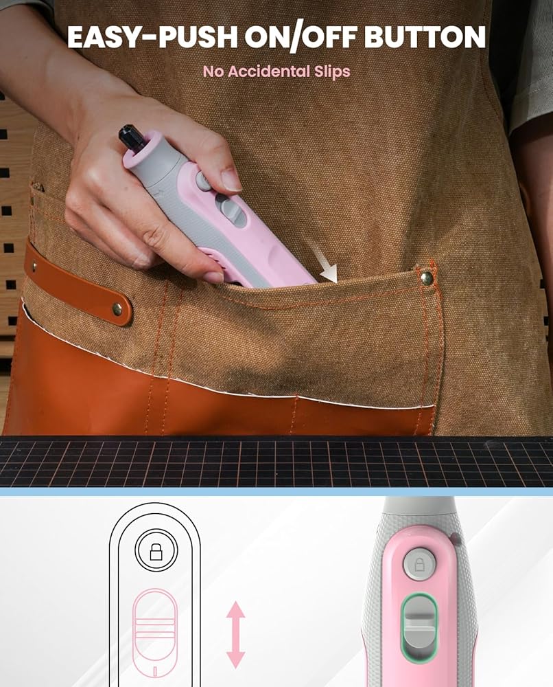 • 【COMPACT LIGHTWEIGHT DESIGN】Mini rotary tool is just like a pen - compact and super portable! It can effortlessly into your pocket or the tiniest toolbox, taking up next to no space. The lightweight design guarantees that you won't feel burdened or uncomfortable even when holding it for a long time. Whether you're creating exquisite jewelry or complex handicrafts, the ergonomic handle reduces hand fatigue and enables precise manipulation
