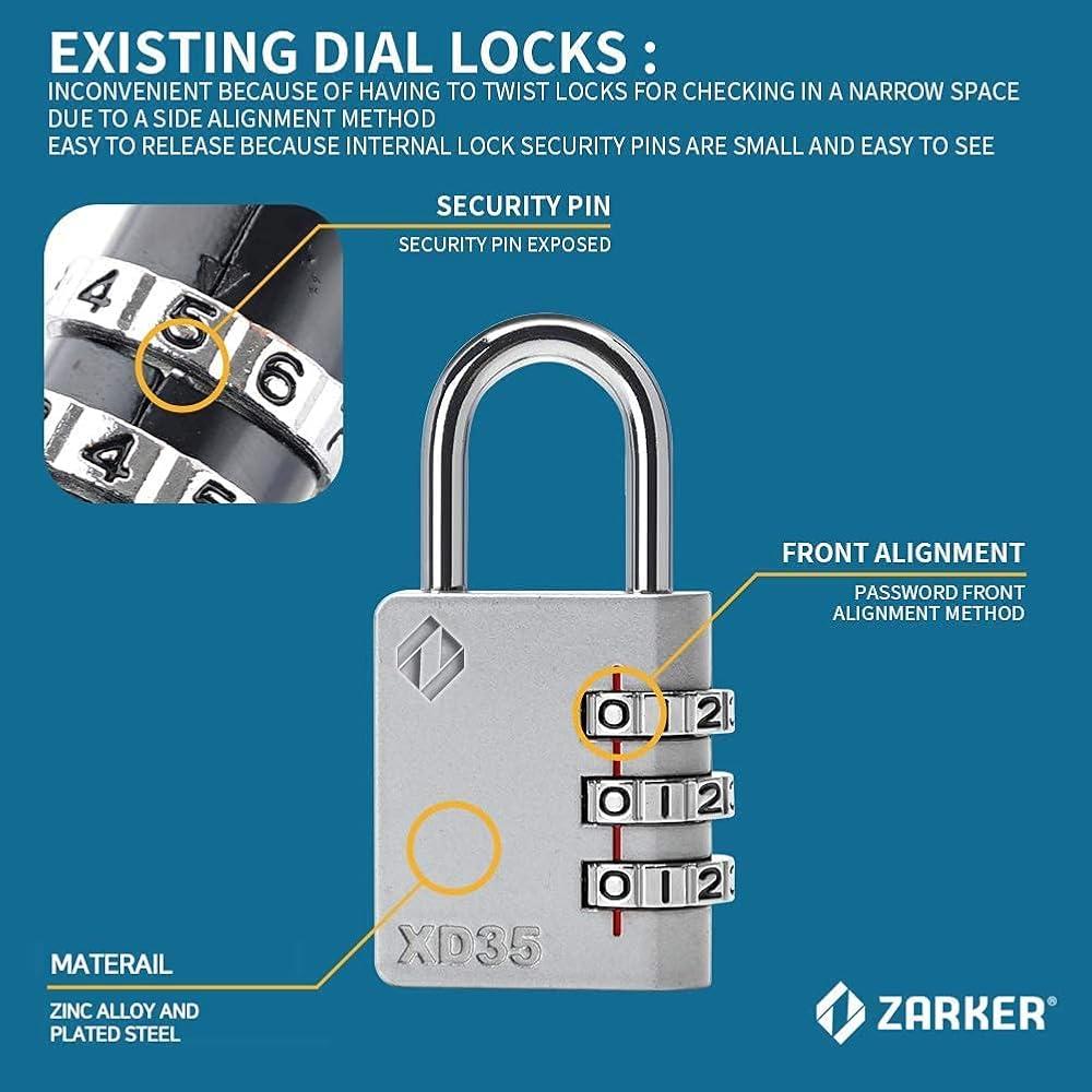 • أمان قفل القرص: يتم توفير 1000 مجموعة من آليات القفل لضمان السلامة. يمكن فتح معظم الأقفال بسهولة باستخدام هيكل داخلي مع دبوس أمان واحد فقط أسفل القرص، ولكن ZARKER يستخدم 4 دبابيس أمان لتوفير الحماية والأمان من السرقة.