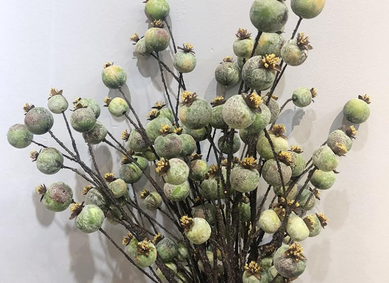Size:2 Bundles, Each Bundles Green Artificial Poppy Fruit Ball 16 pcs, Stem measures appr. 29 inch tall, and the Fruit head is appr. 1 to 1.3 inch in diameter. Suitable for glass bottles, slim vases, baskets to create a beautiful display, or join with other artificial flowers for a nature-inspired centerpiece.