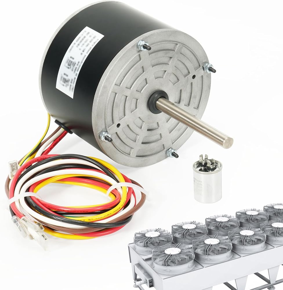 51-23055-11 محرك مروحة مكثف 1/5 حصان، 1075 دورة في الدقيقة، 60 هرتز، 1.3 أمبير، 208-230 فولت متوافق مع Rheem Ruud Weather King Ruud Protech 51-21853-01 51-21854-01 مكيف الهواء AC