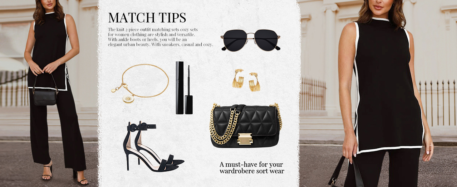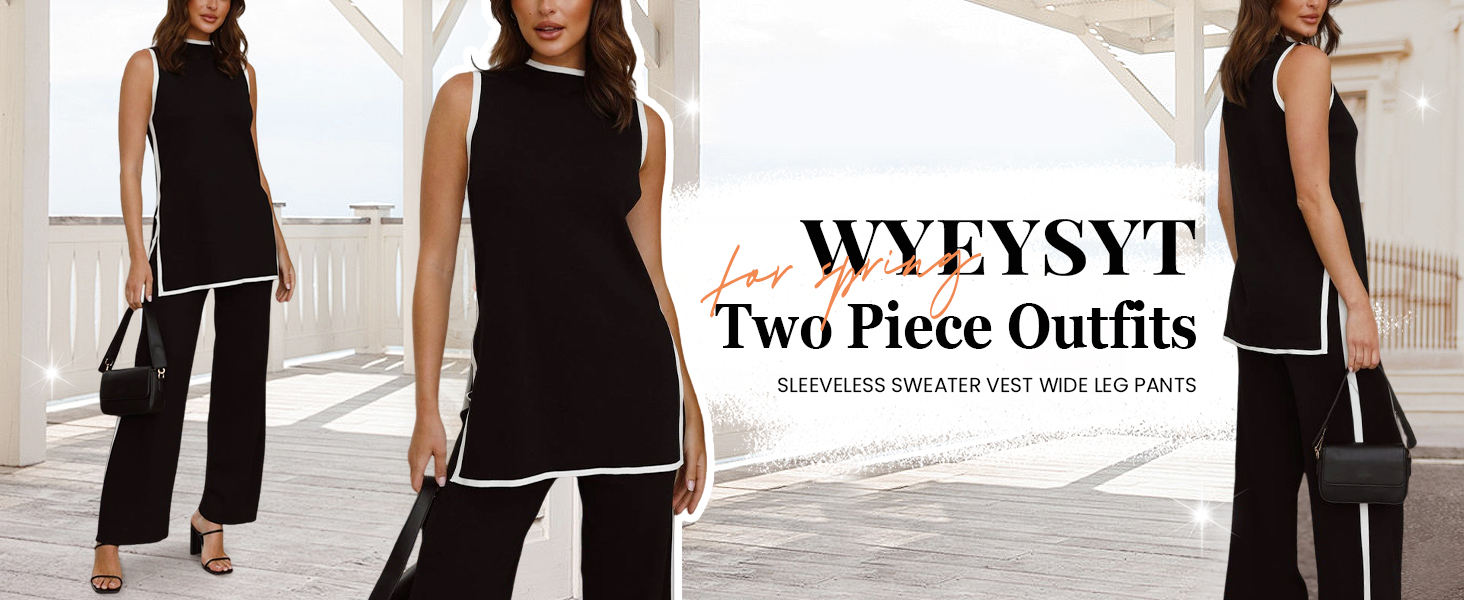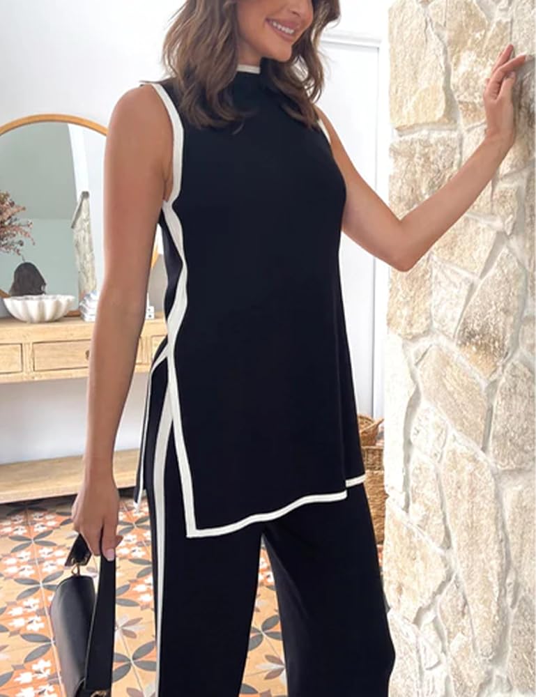 Wyeysyt Lounge مجموعات للنساء سترة 2 قطعة ملابس سترة بلا أكمام سترة علوية واسعة الساق السراويل مطابقة مجموعة رياضية (أسود-M)